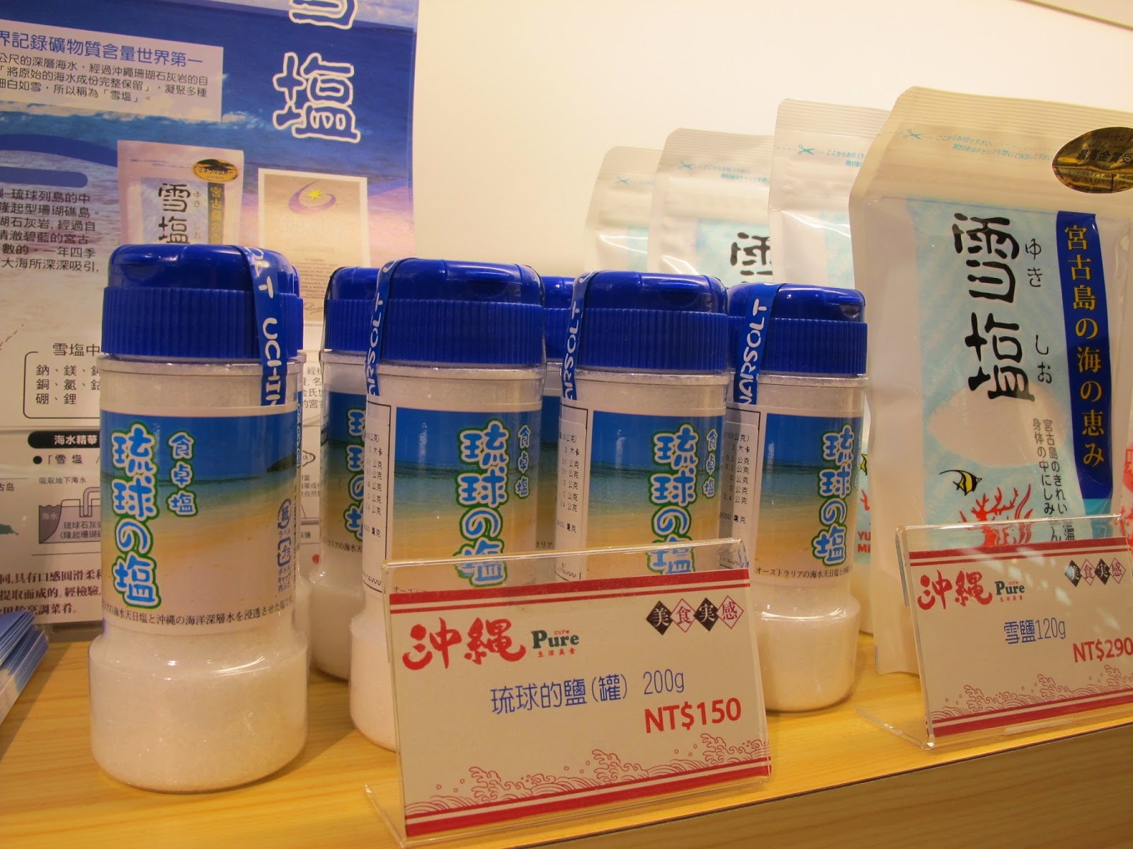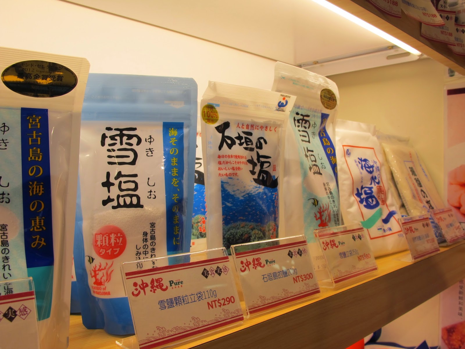 實際上逛過這裡後發現,這裡的沖繩特產真的是包羅萬象、應有盡有,首先吸引住我目光的是這些沖繩雪鹽,喜歡烹飪的我,早就聽聞沖繩雪鹽的營養價值很高,含有18種礦物質,尤其這些雪鹽是以特殊的噴灑式作法將鹽加熱,讓海鹽呈現顆粒型,口感特別圓滑柔和,和一般的食用鹽很不一樣。