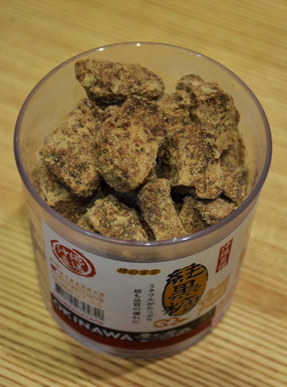 在冰淇淋裡嘗到了沖繩黑糖美味,我開始在櫃位上研究各式各樣的黑糖產品,純黑糖的用途最廣泛,但也有各種濃度單顆包裝的黑糖,以及添加雪鹽的黑糖,原來純甘蔗熬煮的黑糖是褐色的,而不是印象中的深咖啡色,這種褐色的黑糖才是最純最好的!