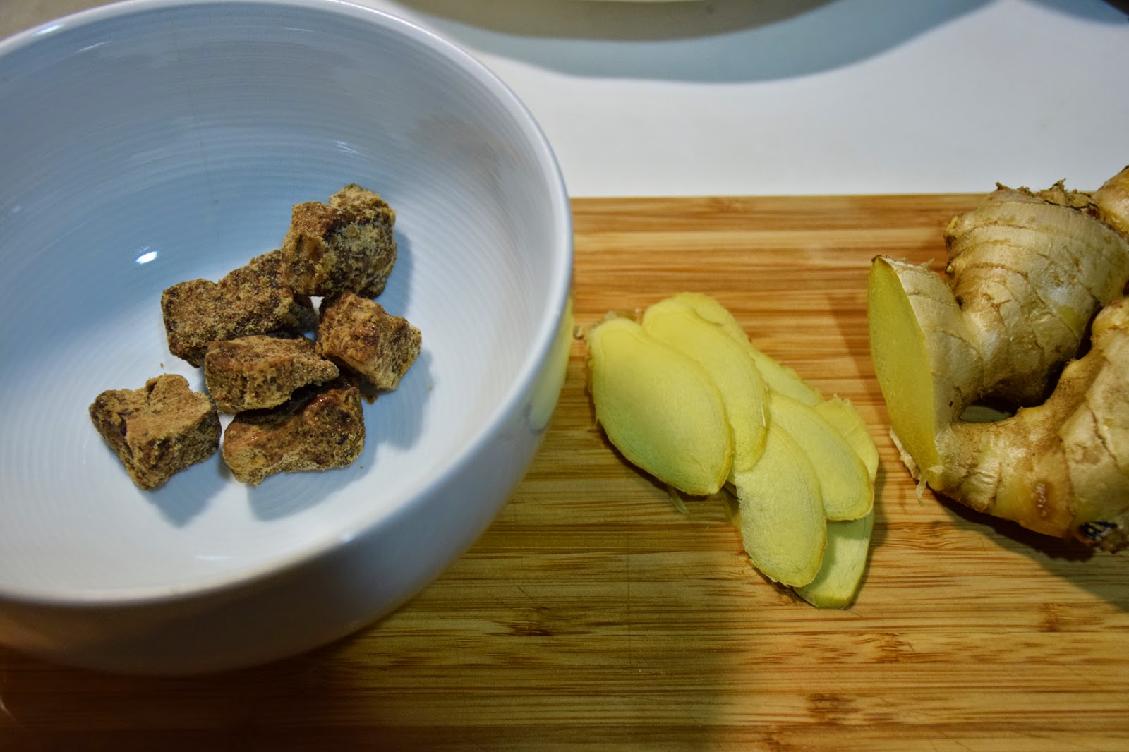 回家之後,我用館內人員教我的方法,自己嘗試用純黑糖泡製黑糖薑茶,請注意不用煮喔,過程非常輕鬆簡單,我先切了一些老薑!!