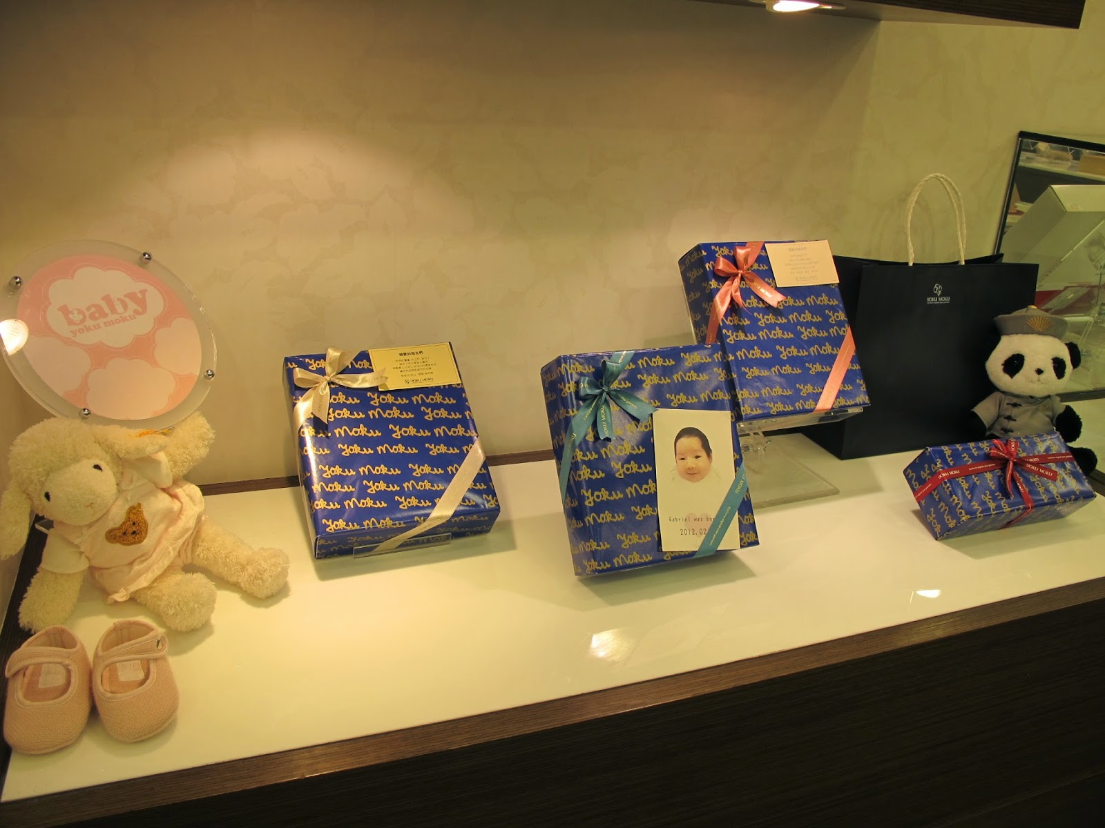 彌月禮盒也可以為你包裝得如此精緻用心,上面的緞帶也全是日本原裝,講究的蝴蝶結打法,也是日本式的,顯得非常高級精巧。