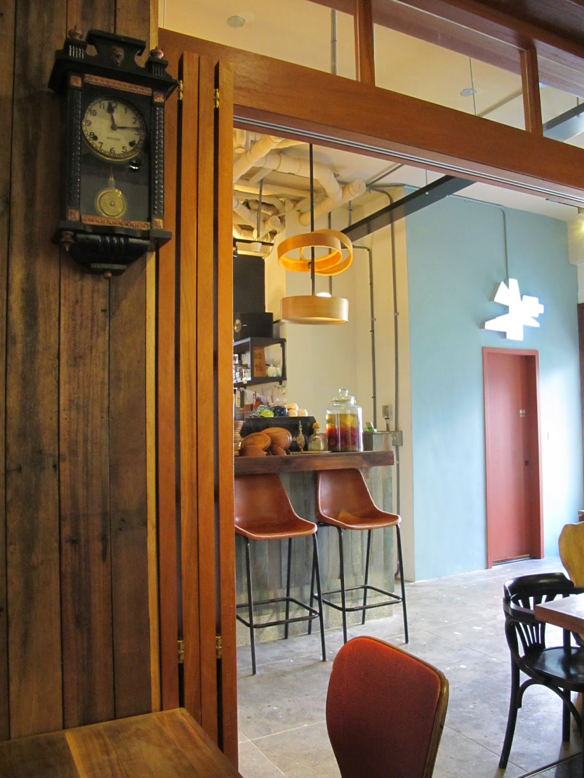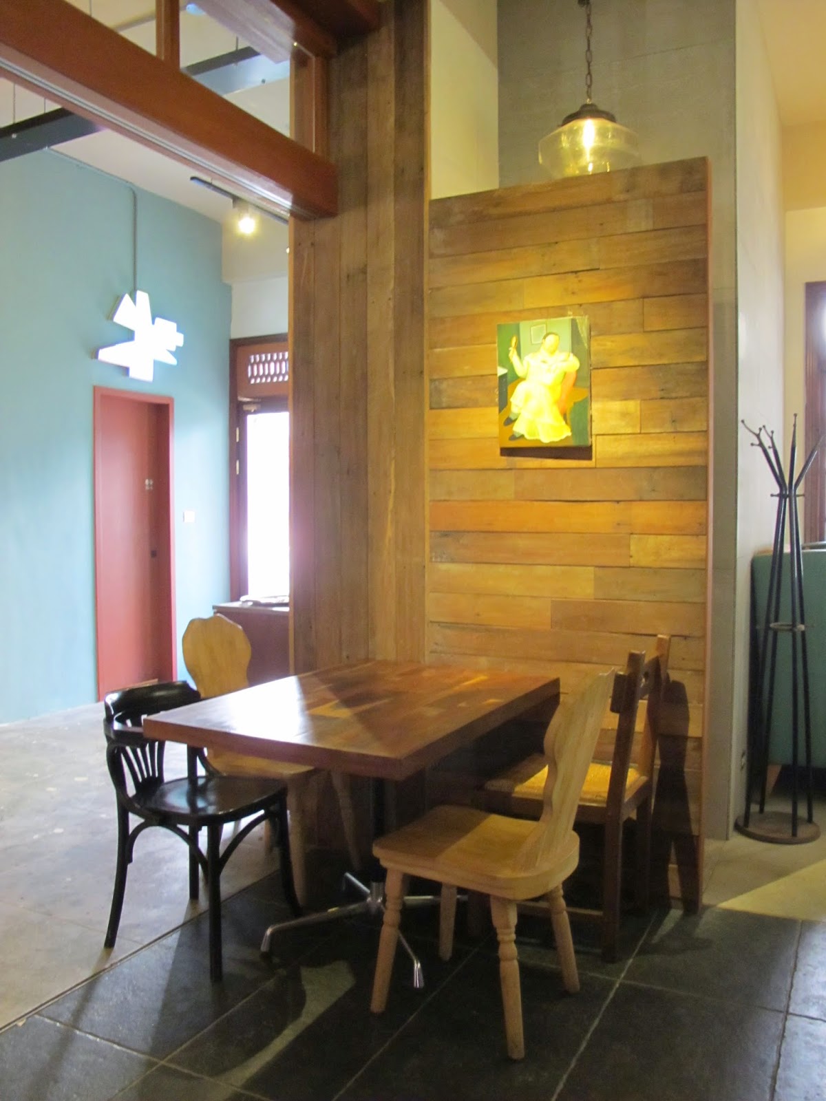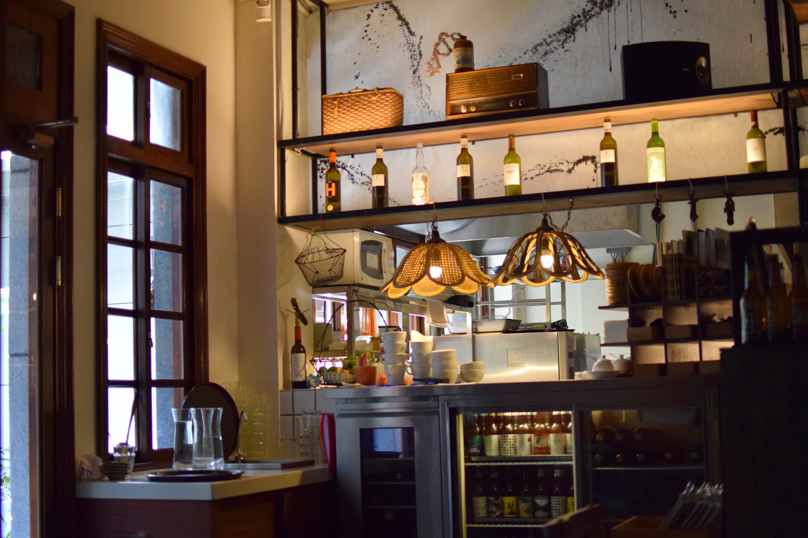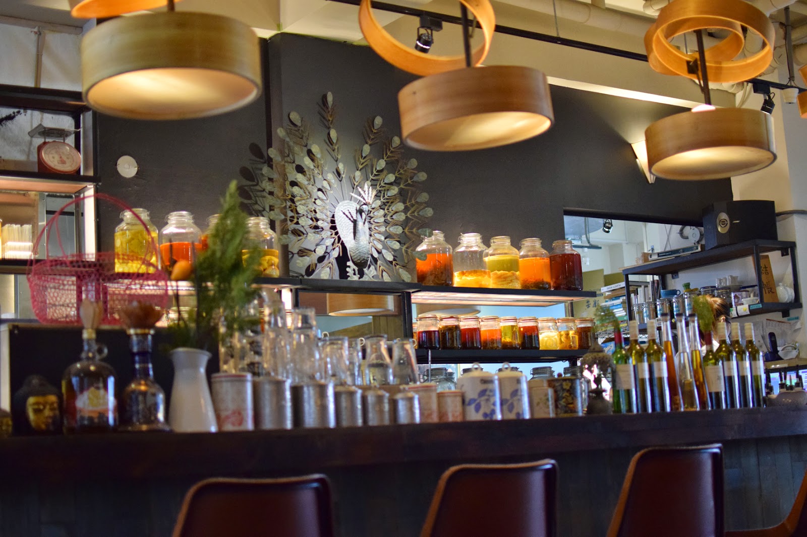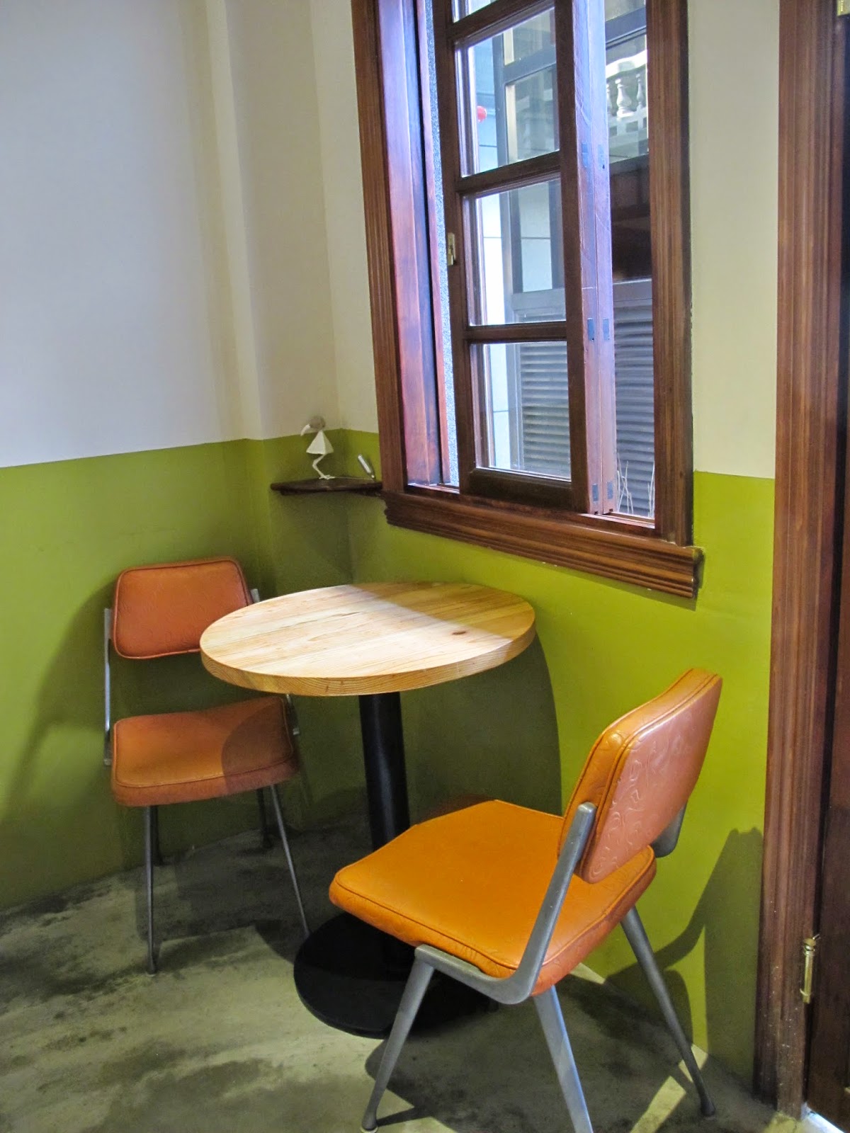 記憶中鹹花生的木質窗櫺,這裡也有,但是店內坪數縮小很多,成為一間只擁有四五張桌子的小咖啡店,找不回當初的鹹花生記憶,令我有點沮喪,繼續穿過陽光綠意的中庭,推開孔雀小酒館的門,復古的氣息一湧而上,樸質的木製桌椅,與昏黃的燈光在陽光若有似無的灑進,別有一番文青氣息。