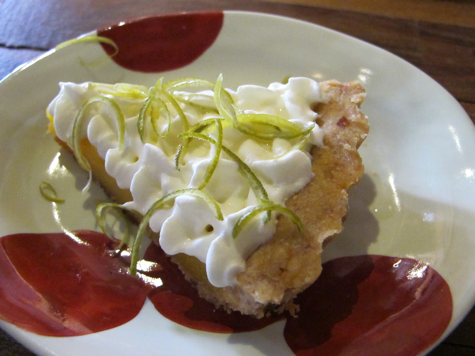 這份充滿檸檬氣息的甜點,名為松子檸檬塔佐橙香酒鮮奶油,端上來的時候奶油已經軟糊糊的站不挺了,明顯可看出這份鮮奶油是手打出來的鮮奶油,沒有加多餘的添加物讓它硬挺,愛吃純奶油的我立刻切了一口試吃,奶油下的檸檬醬是柔軟的,與奶油平衡出剛好的酸甜度,是我近期吃到最好吃的手作檸檬塔!!上頭新鮮刨下的檸檬皮,引人垂涎。