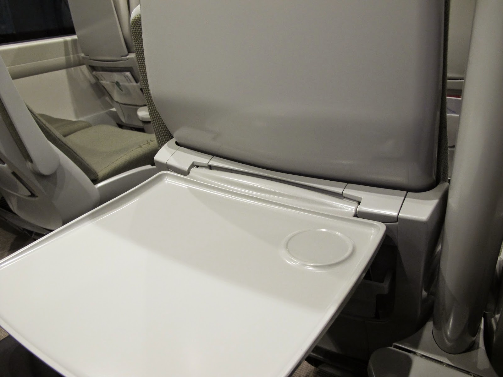 桌子是金屬做的,和西班牙高鐵一樣,非常堅實耐重,座位中間並附有充電插座。