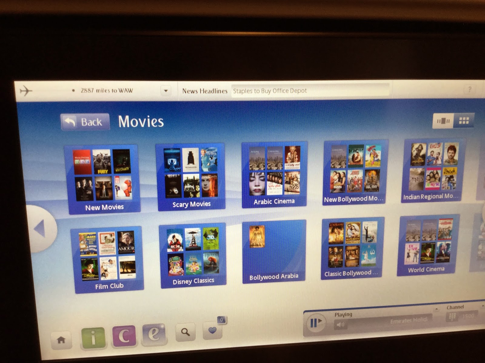 電影選擇非常多,大部分都有中文字幕,在飛機上絕不會無聊。