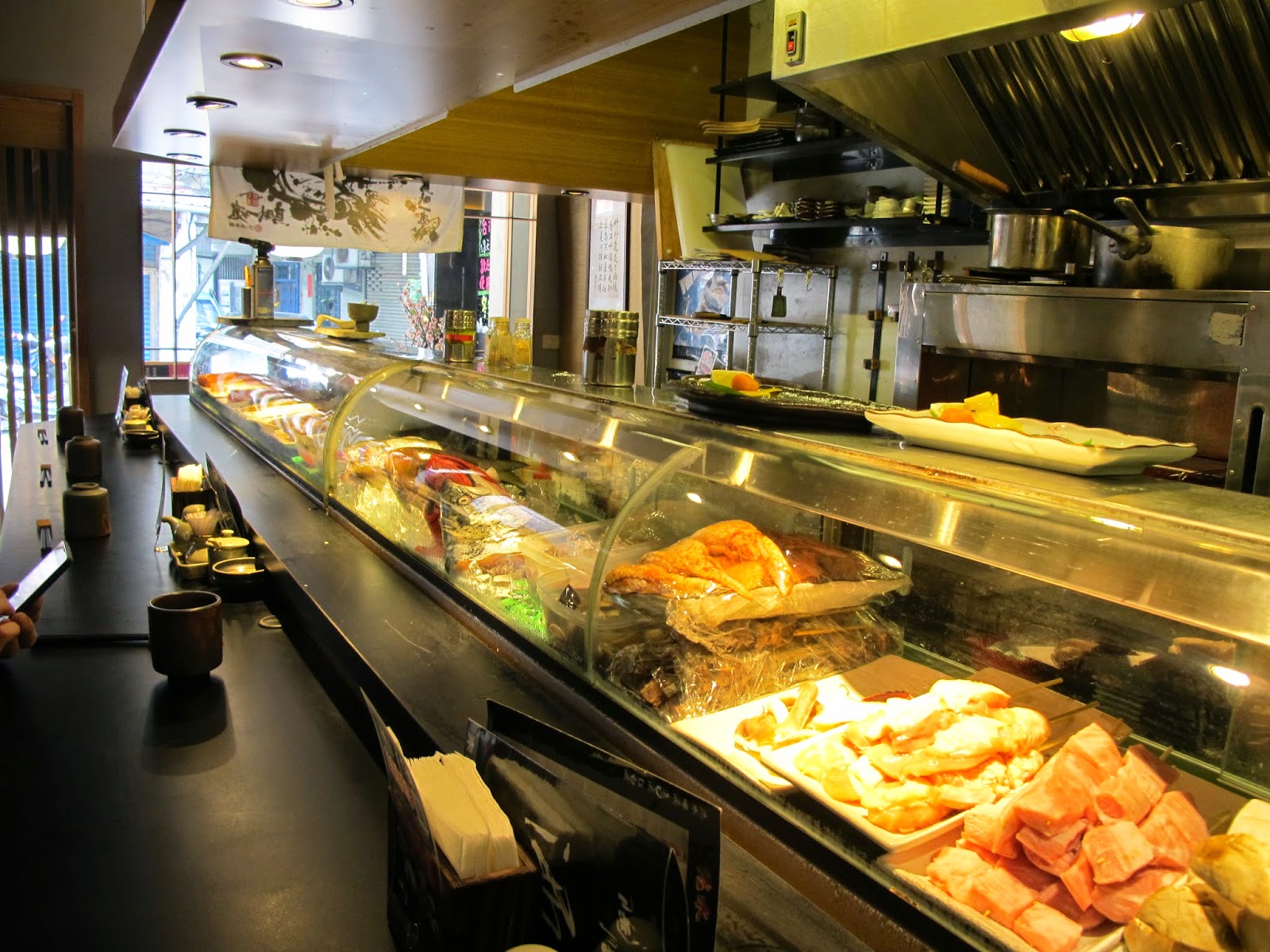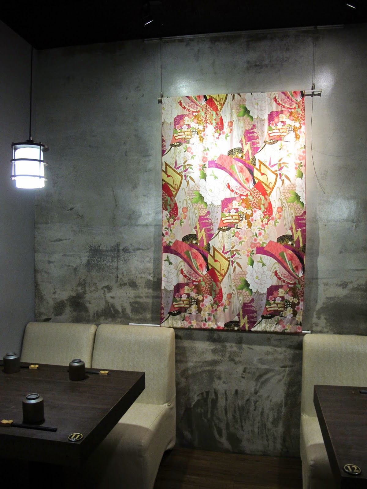 店內除了一般開放式座位與吧檯座位,還有一個隱密的兩桌八人份小包廂,結合日式風格與清水模的牆面營造出現代日式風格。