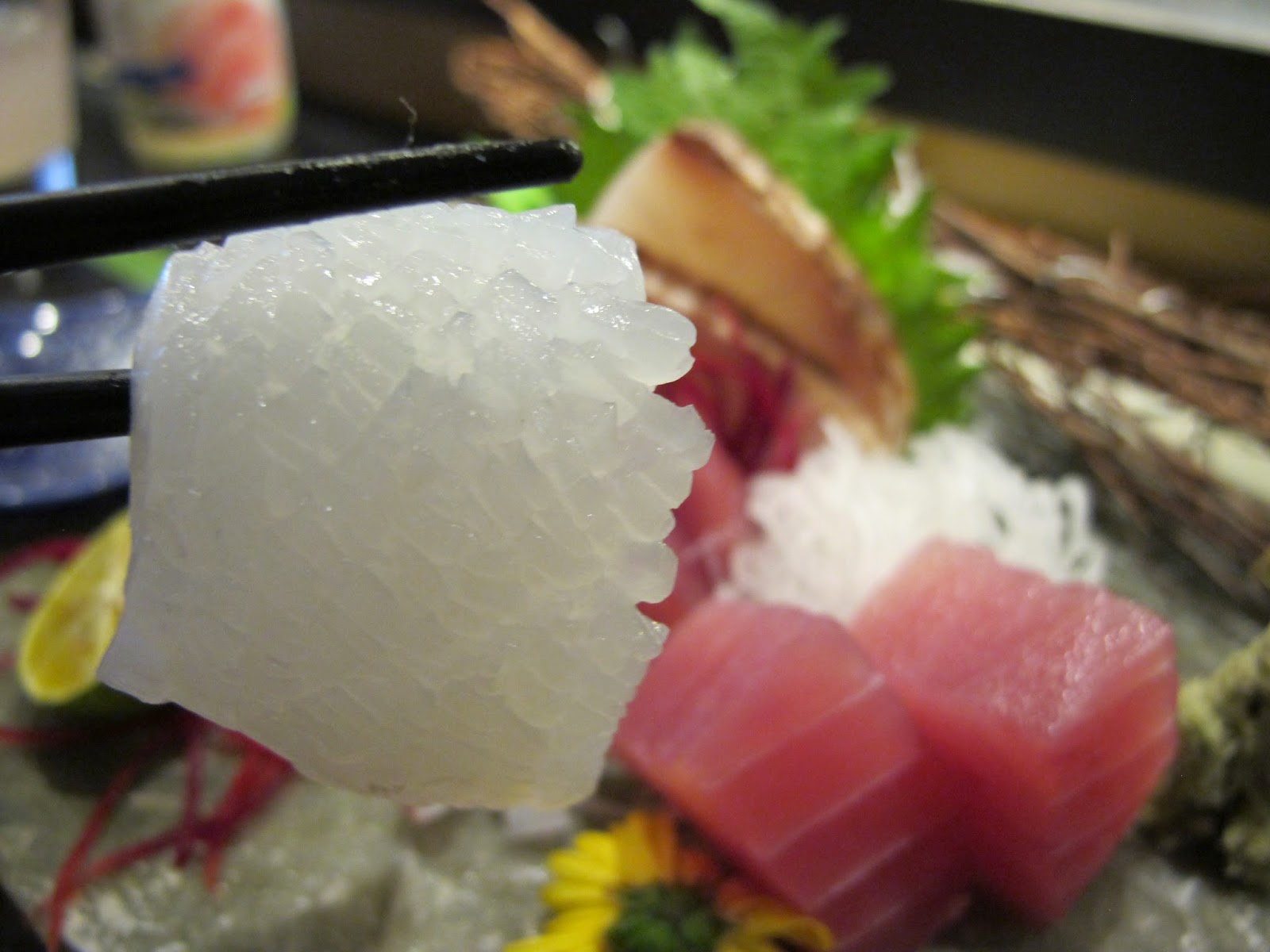 軟絲是展現師傅刀工的時候,切得這麼細緻佐著一旁的玫瑰鹽,甘甜滋味不在話下。