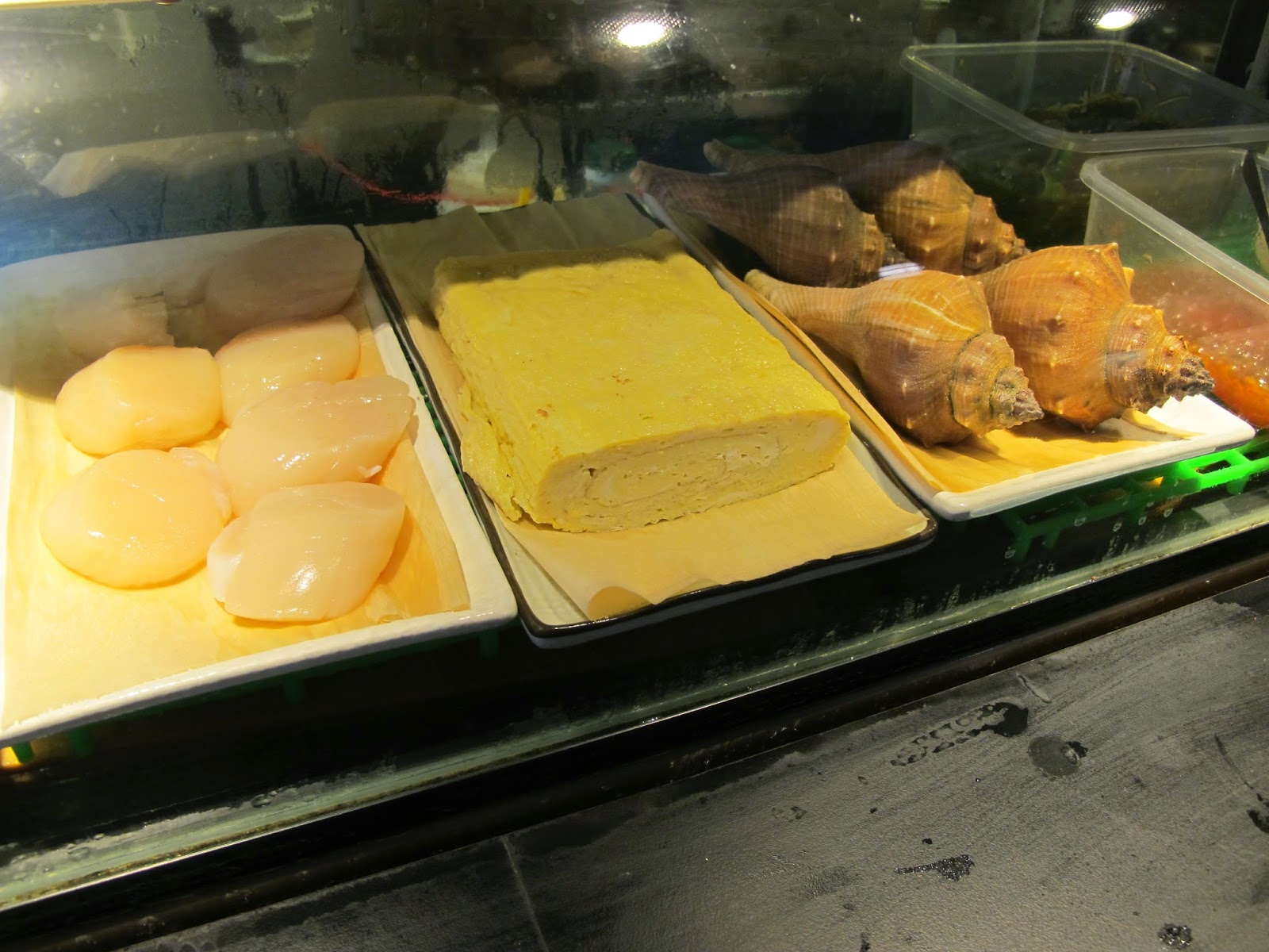 在生鮮櫃發現好多珍貴特別的食材,碩大的干貝與難得一見的螺貝都展現耀眼新鮮的光澤,令人垂涎不已。