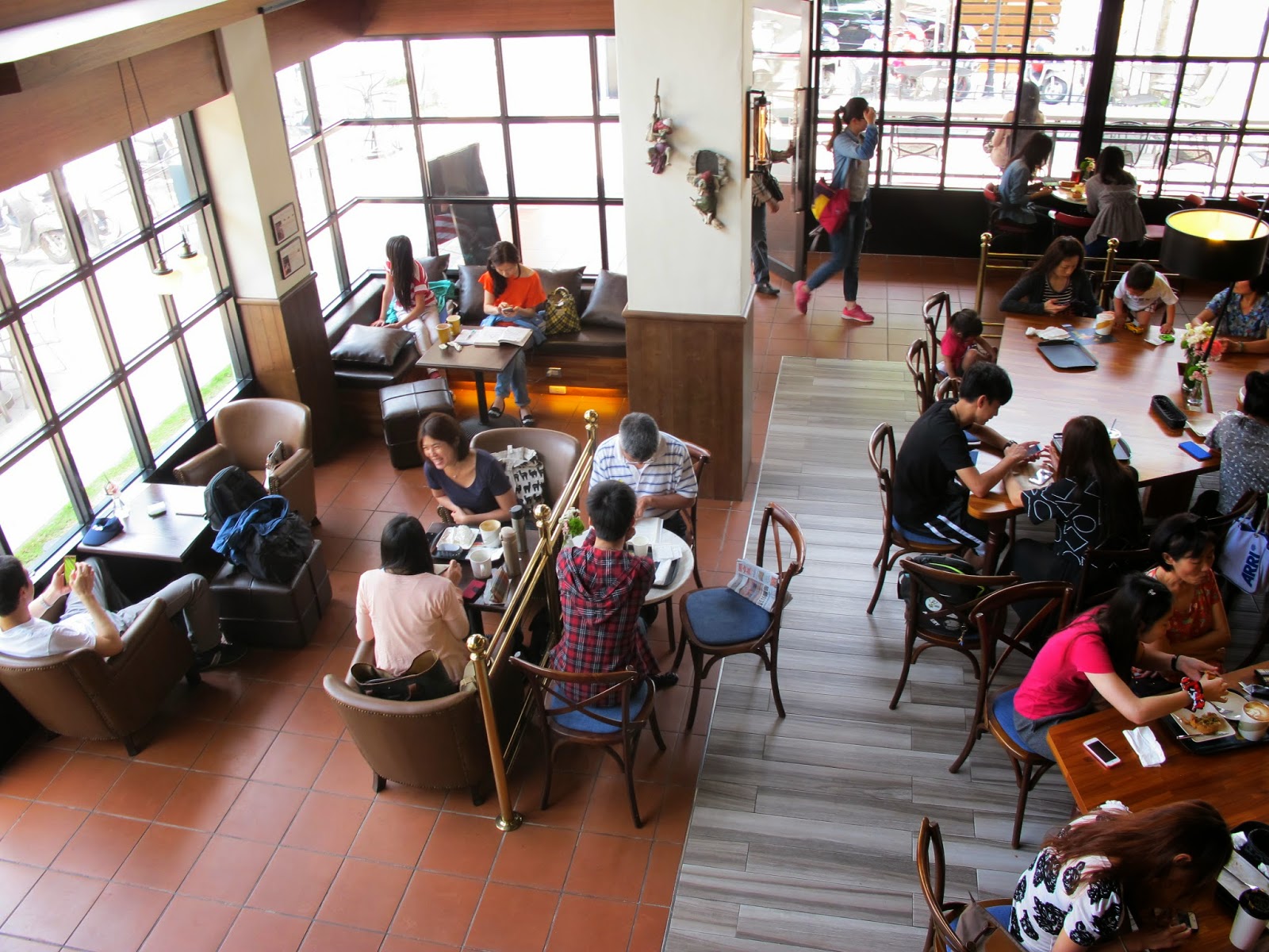 卡啡那Caffaina Coffee Gallery整體環境明亮優雅,沒有低消與時間限制,令人感覺毫無壓力,帶上筆電可以輕鬆窩一個下午,二樓的區域氣氛較為沉靜,喜歡閱讀的人可以選擇樓上座位,一樓座位都是家庭或是談天的聚會,滿座後較為嘈雜些,周末中午過後就一位難尋了。