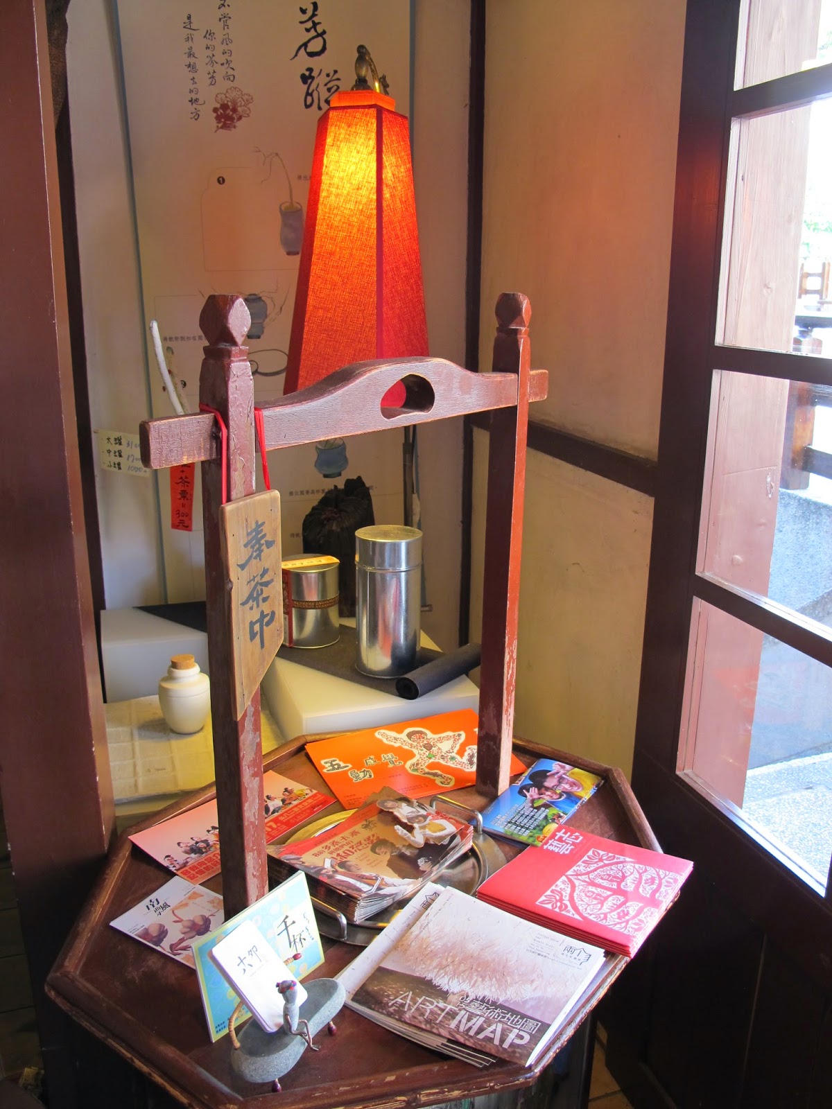 入口處也販賣茶葉、書籍、紀念品等,與這個日式老屋空間互相呼應的相關商品,並提供台南旅遊資訊,可以免費拿取。