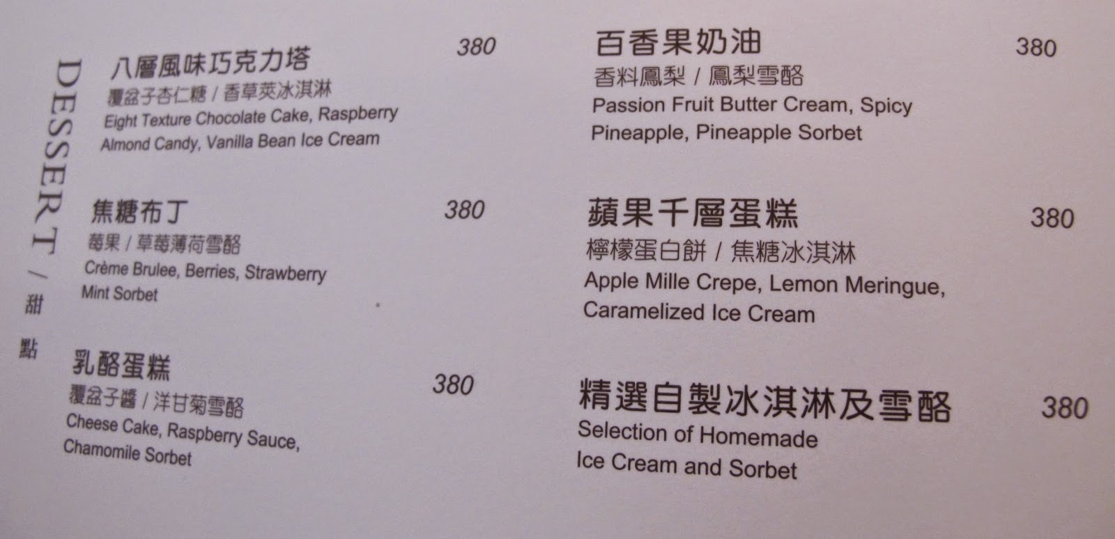 甜點有六種選擇,與其他餐廳最與眾不同的蘋果千層蛋糕、八層風味巧克力塔,最吸引人!