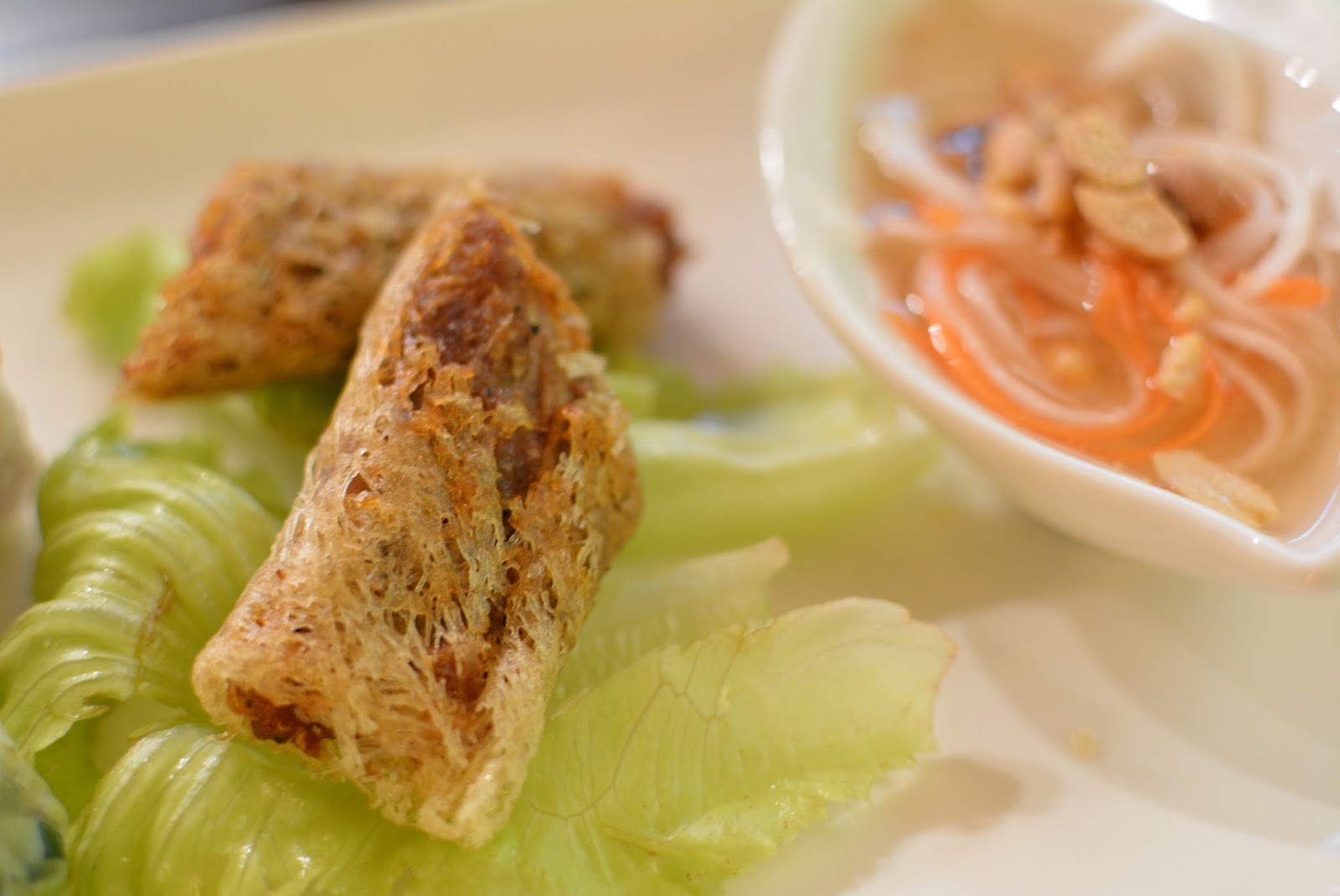越南的另一個著名小點就是炸春捲,以薄麵衣裹著肉餡酥炸,再包著生菜入口,嚐起來一點都不油膩,滿口酥香,生菜更增加了炸春捲的鮮脆口感!