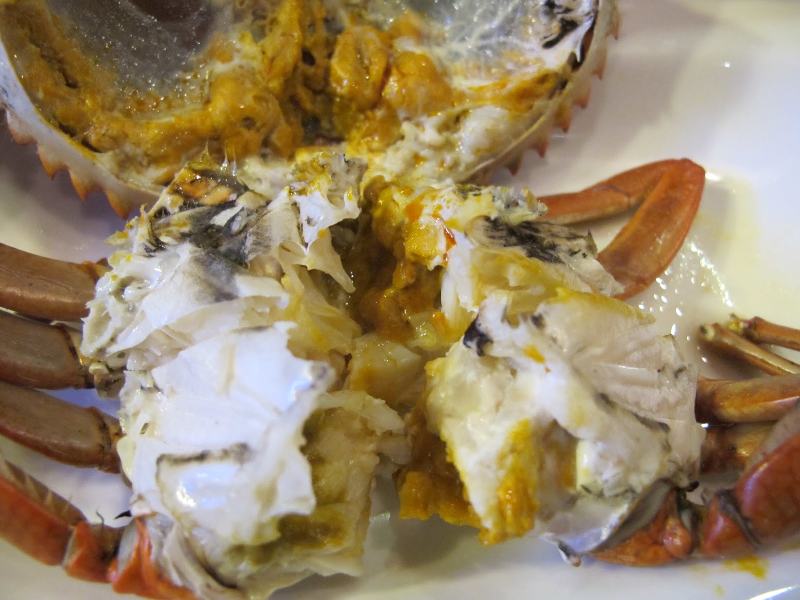 翻開蟹殼,更是令人驚呼連連!裡面蘊藏著非常飽滿的蟹黃,煮得恰到好處的柔軟,又熱又嫩的蟹黃非常吸引人,身體裡的蟹肉也飽含水分,一點都不乾澀,滋味鮮甜不在話下。