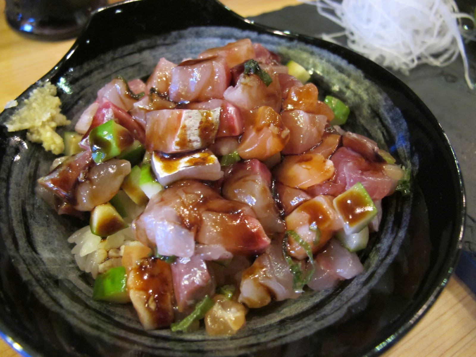 吃完如果還覺得不過癮,還有散壽司,師傅將魚肉切成小塊狀稍微調味後放在醋飯上,這又是一道適合夏季的菜色,冰鎮過後的魚肉淋上微甜的醬油,小黃瓜的鮮脆加上生魚片的軟甜,真是非常開胃。