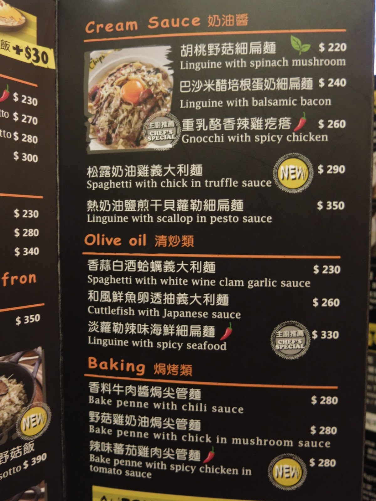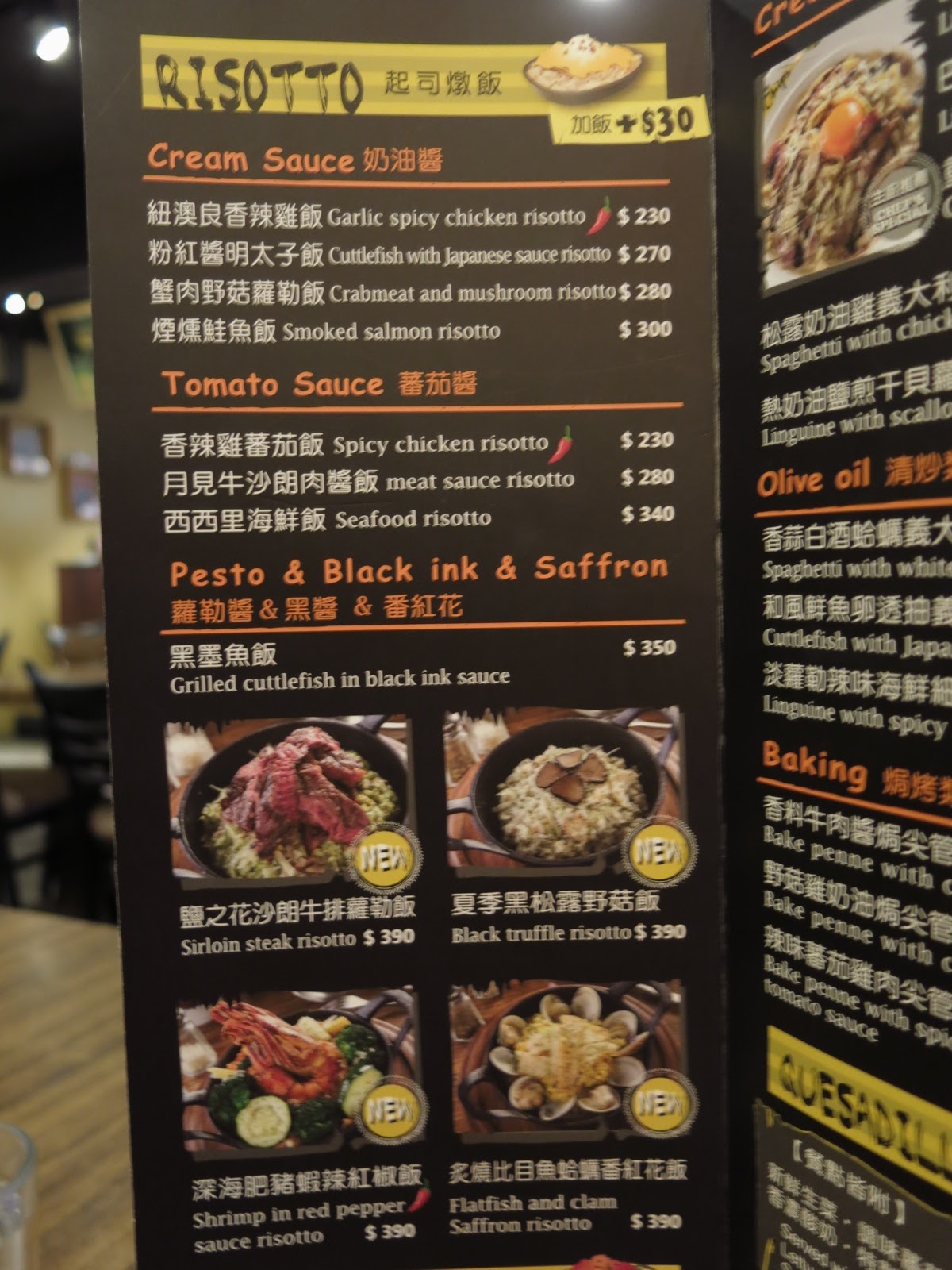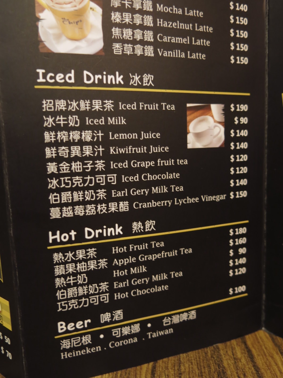 the Chips的菜色選擇非常多樣化,除了義大利麵與燉飯還有早午餐、漢堡、起司烙餅甚至牛排等,菜色超級豐富,在此附上菜單給大家參考。