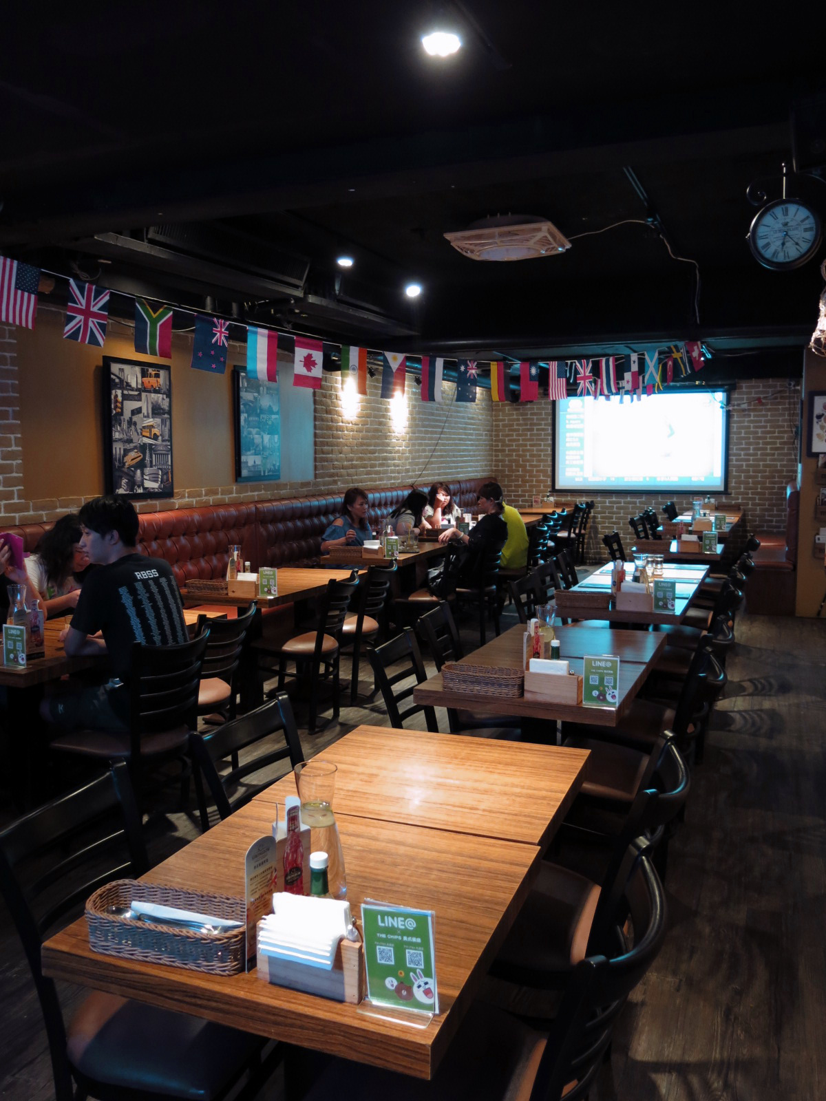 用餐當中,餐廳座位陸續被年輕食客填滿,用餐氛圍顯得輕鬆活潑,前後側各有一個巨大的螢幕安靜的播放著球賽,增加用餐的趣味性。