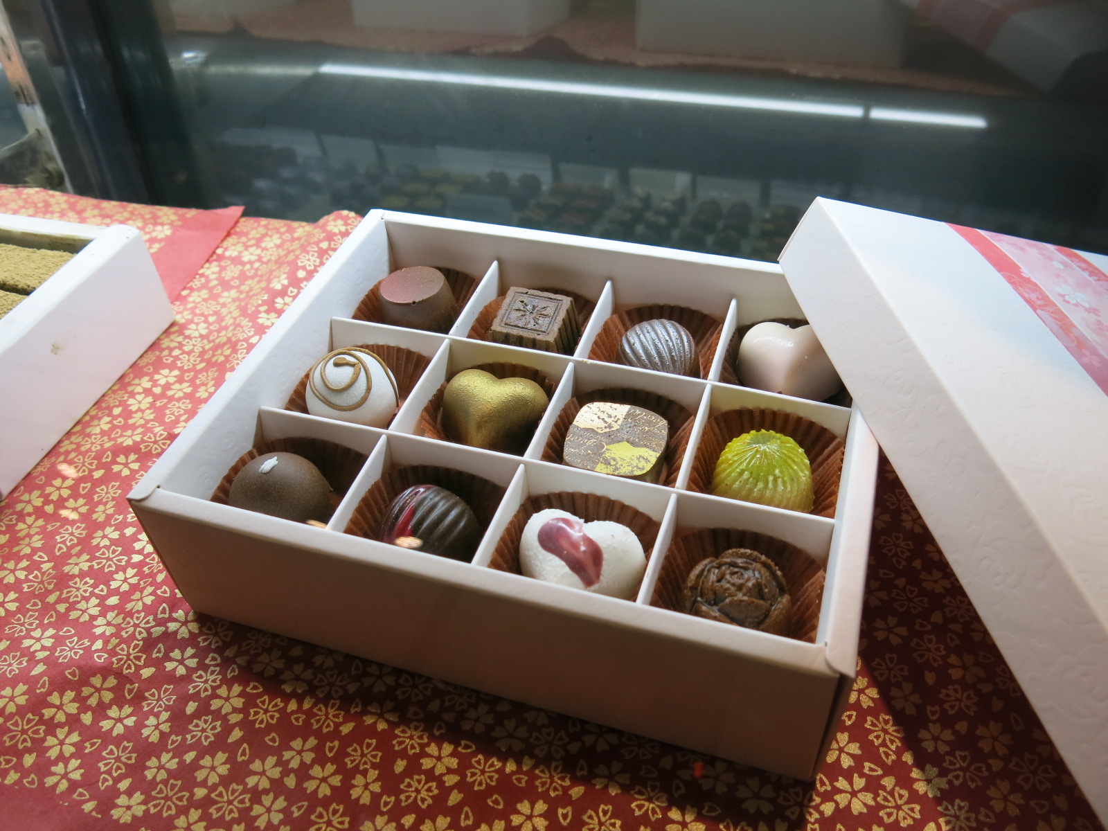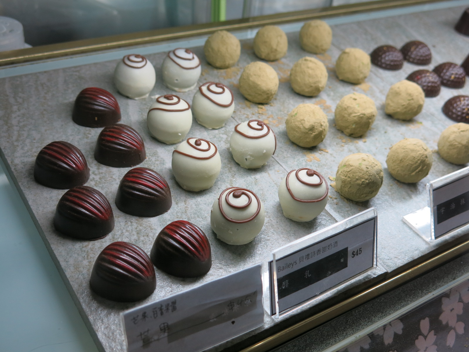 玻璃櫃裡還有很多漂亮的手工巧克力,美的像珠寶一樣,讓人欣賞很久,捨不得入口。