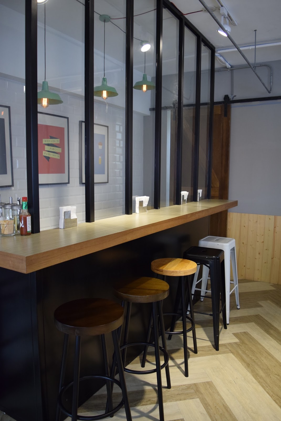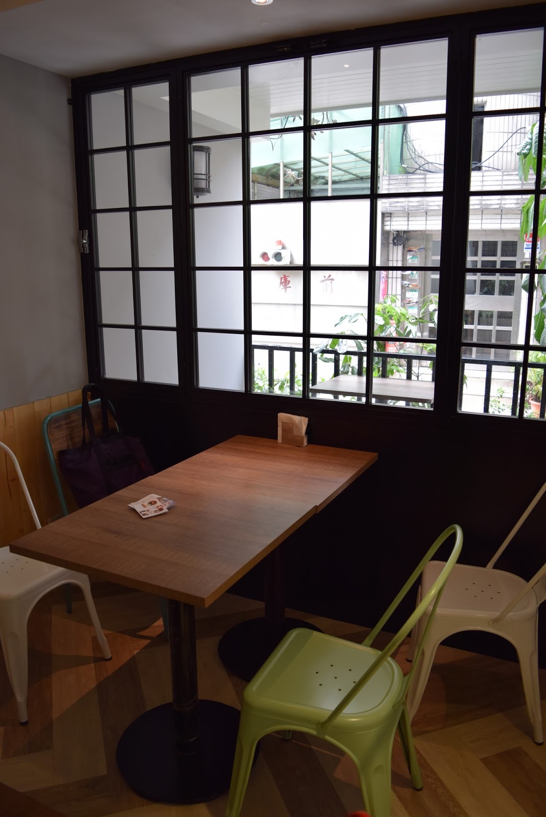 店內沿著窗櫺有著幾桌四人座,小巧可愛的家具與色彩活潑的擺設相當討喜,另外也有吧檯的座位,透過玻璃面對掛著色彩鮮明海報的白磁壁面,別有一番風情。