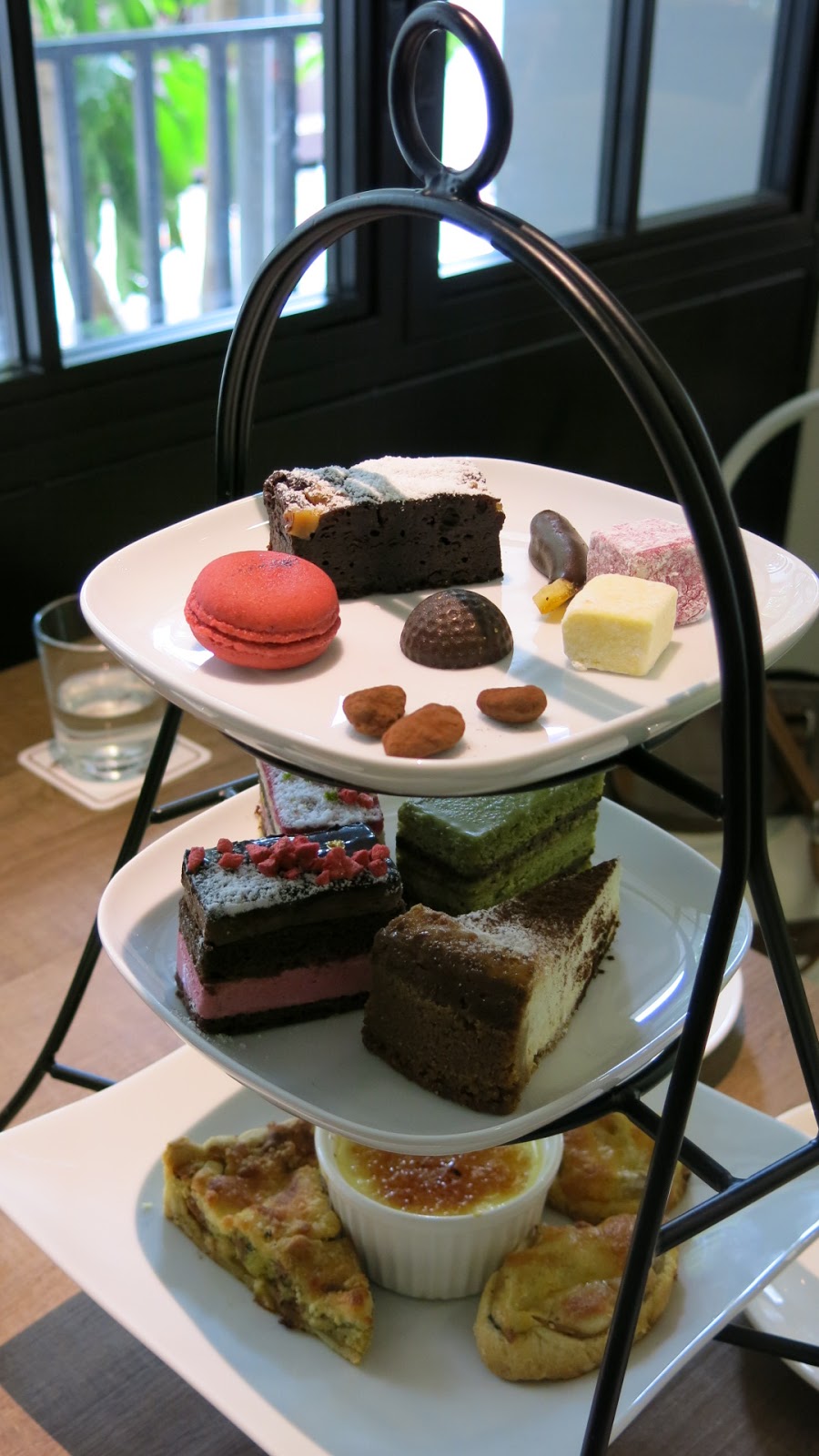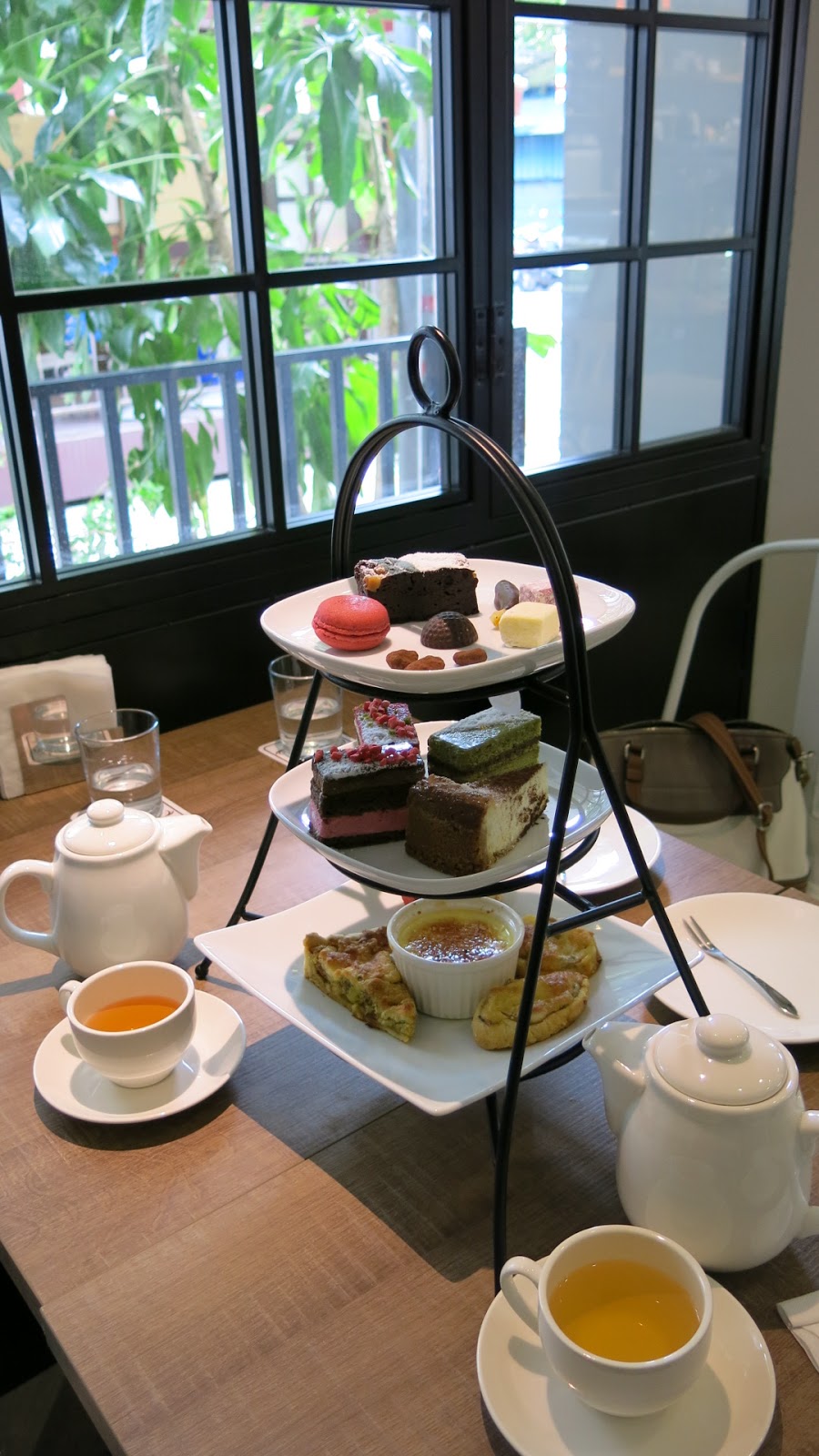 甜點三層架一上桌,立刻引起大夥一陣驚呼,雅致甜美的各式蛋糕、巧克力、鹹點、馬卡龍井然有序的層層排列在三層架中,而黑色層架的風格與店內的空間設計互相呼應,真的是搭配得太好了!