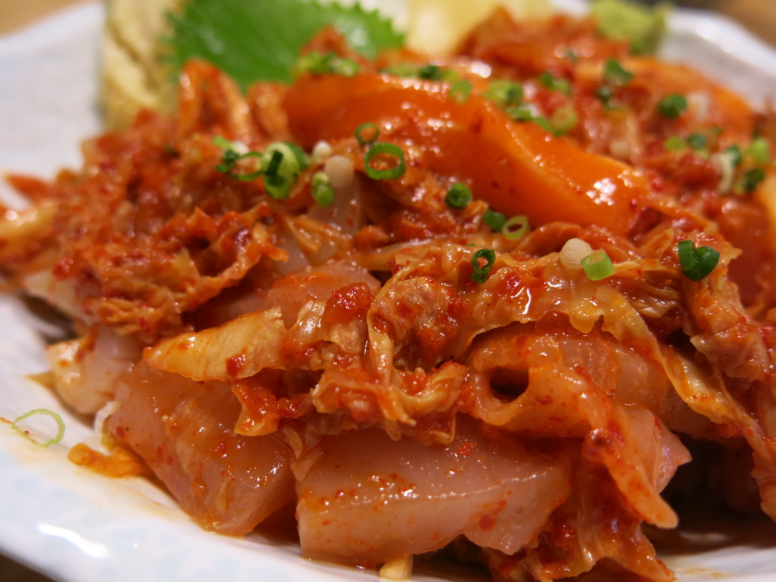 這道韓式海鮮丼可說是非常大膽之作,將鮭魚、軟絲、旗魚、鮪魚、紅魽這幾種生魚片與韓國泡菜搭配在一起做成海鮮丼,吃起來辛辣刺激,相當過癮,適合喜歡吃重口味的饕客,搭配著底下越光米炊成的白飯吃,非常下飯。