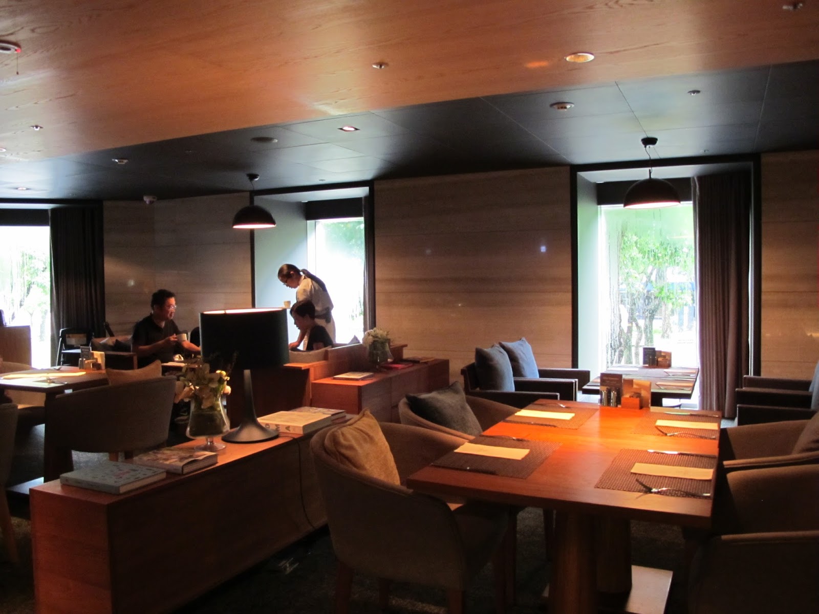 早餐在二樓的Gustoso義大利餐廳用餐,提供自助式早餐,柔和的燈光及沙發,環境蠻舒適的,餐點有西式麵包、培根、火腿等及中式白粥及小菜,雞蛋有個現點現煎區,但當日因為負責煎蛋的廚師有出些狀況,導致許多客人都沒有拿到煎蛋,吃到最後我點的蛋捲才終於做好,廚師也被換掉,現場聽到不少客人抱怨,期待已久的早餐並不如預期所想的豐盛。