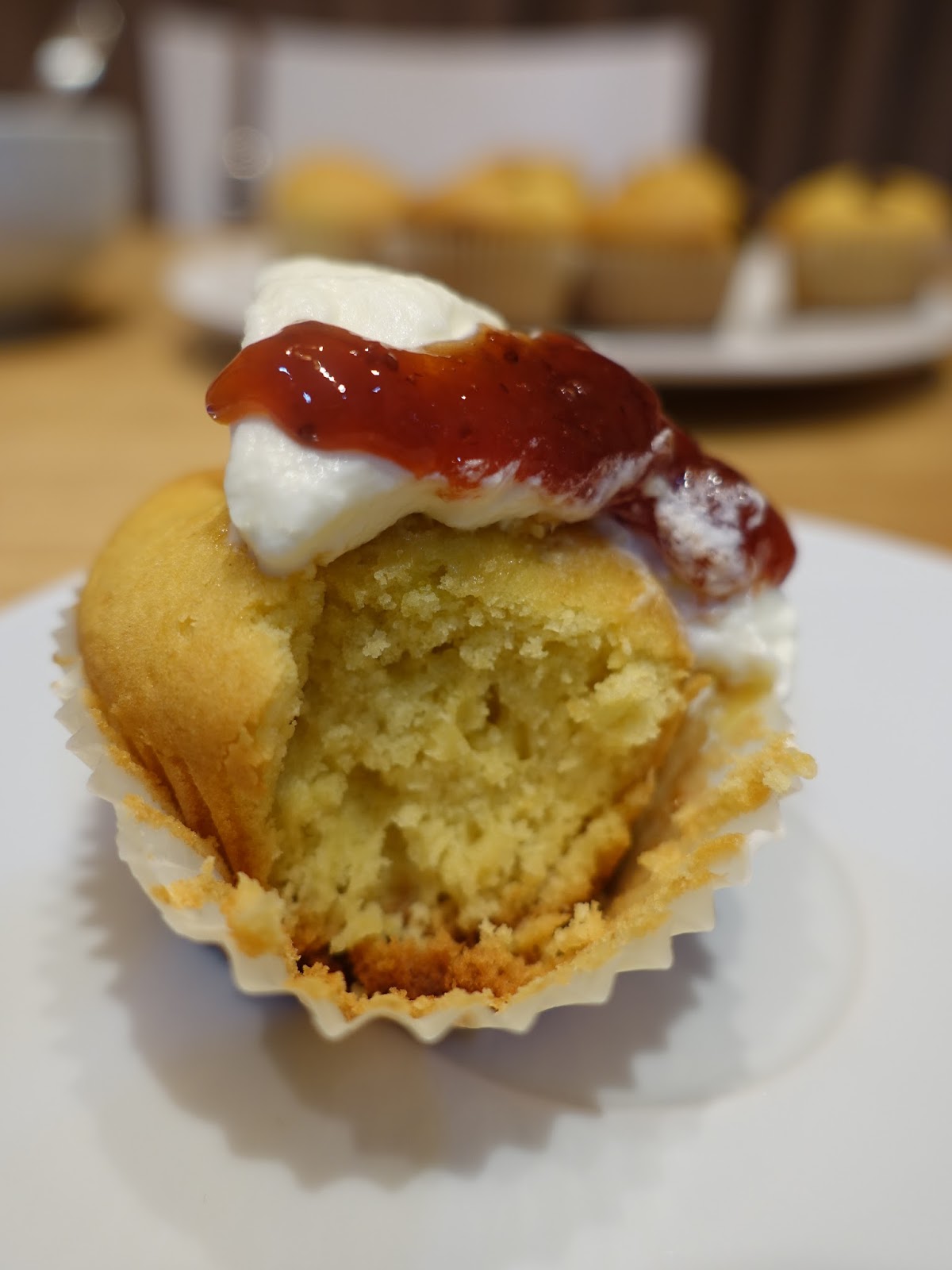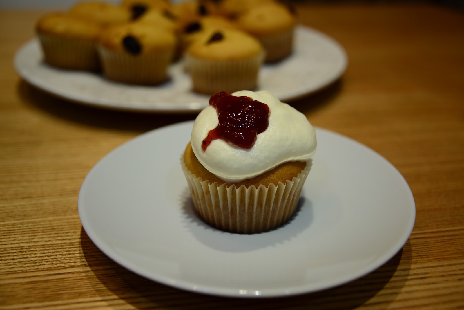 抹上自己手打的奶油和草莓醬,讓瑪芬的口感又更迷人了,瑪芬裡層也相當鬆軟好吃,成功!!!