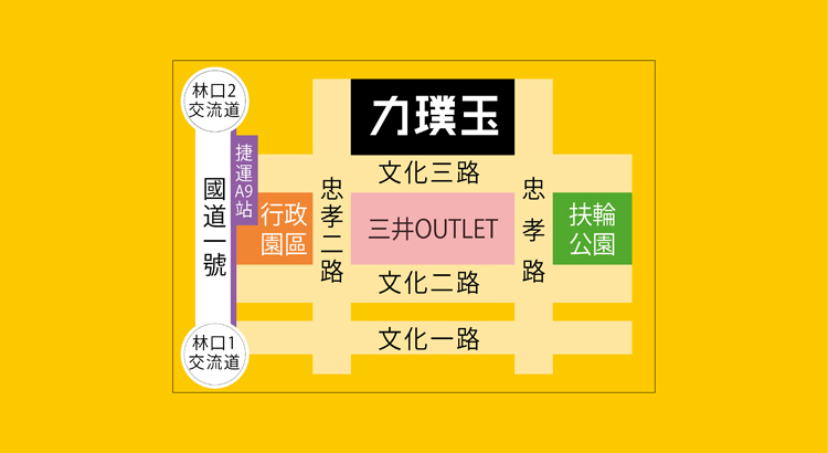 開車從林口交流道下來不到5分鐘的距離就能輕鬆抵達力璞玉,它也位於林口三井Outlet旁,屬於最精華的地段,也就是林口的蛋黃區。