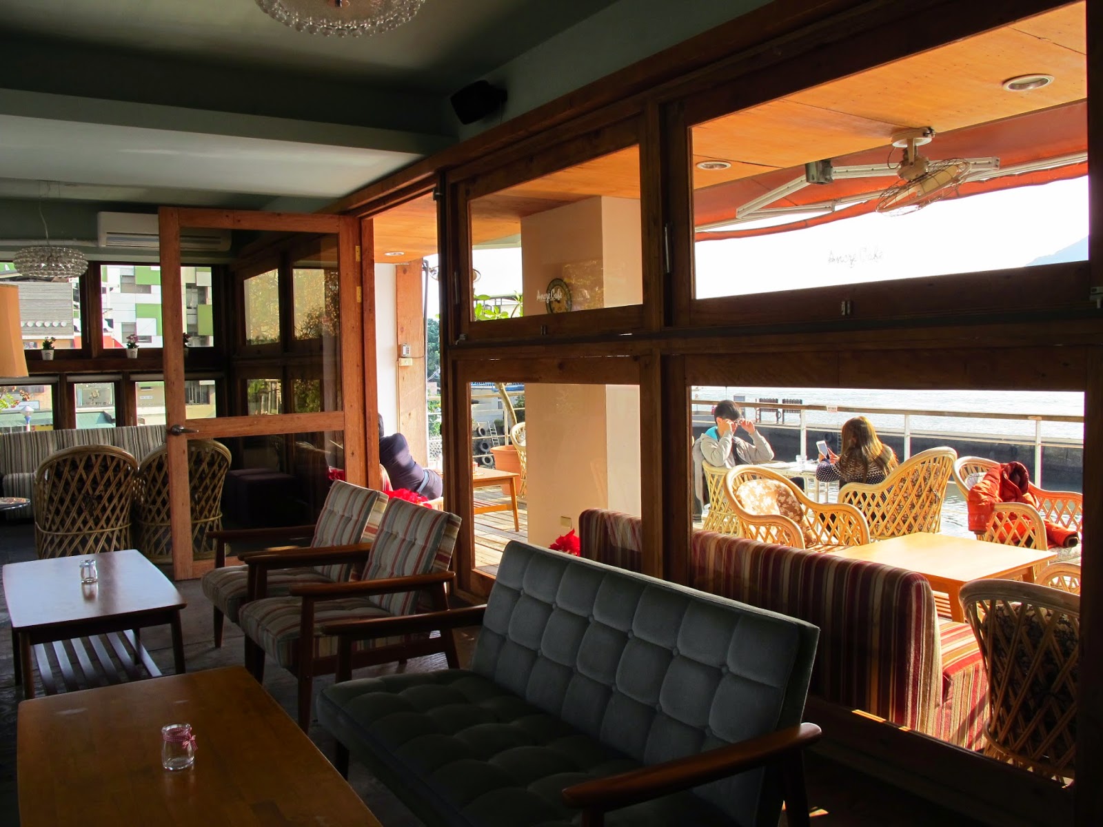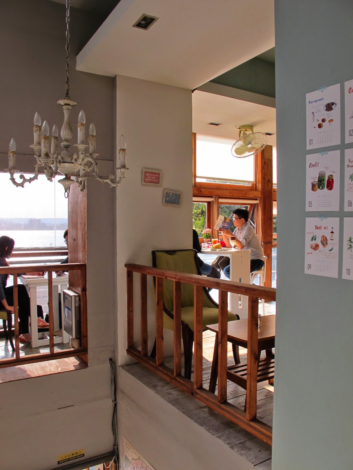 這間坐擁淡水河景的咖啡館,裝潢非常有歐洲風格,雖然一點都不華麗,但相當注重細節及品牌塑造,牆上裝飾著細膩手繪風格以食物為主題的作品,連菜單都是手繪的,非常賞心悅目,連看菜單都覺得像在欣賞名作繪本,久久捨不得放下這小畫本,如果你想要避開淡水擾嚷的老街,在水岸尋找一份閒情,渡過一個輕音樂的午後,那就順著階梯拾級而上吧!
