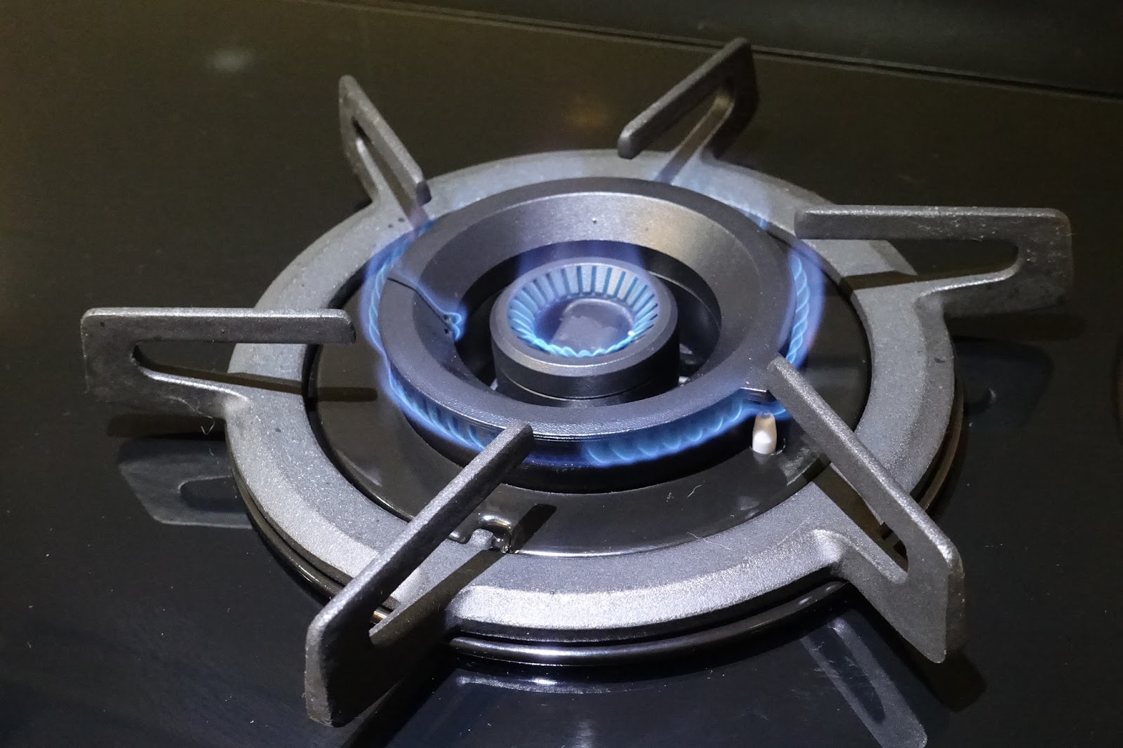 左側爐火還有防乾燒設計,一旦中央的偵測點偵測到溫度過高,會自動將火變小,若溫度持續升高難以控制便會自動熄火,當湯汁溢出而澆熄爐火時也會感應到而自動切斷瓦斯,真是非常安全的設計,也適合容易忘記關爐火的長輩使用。