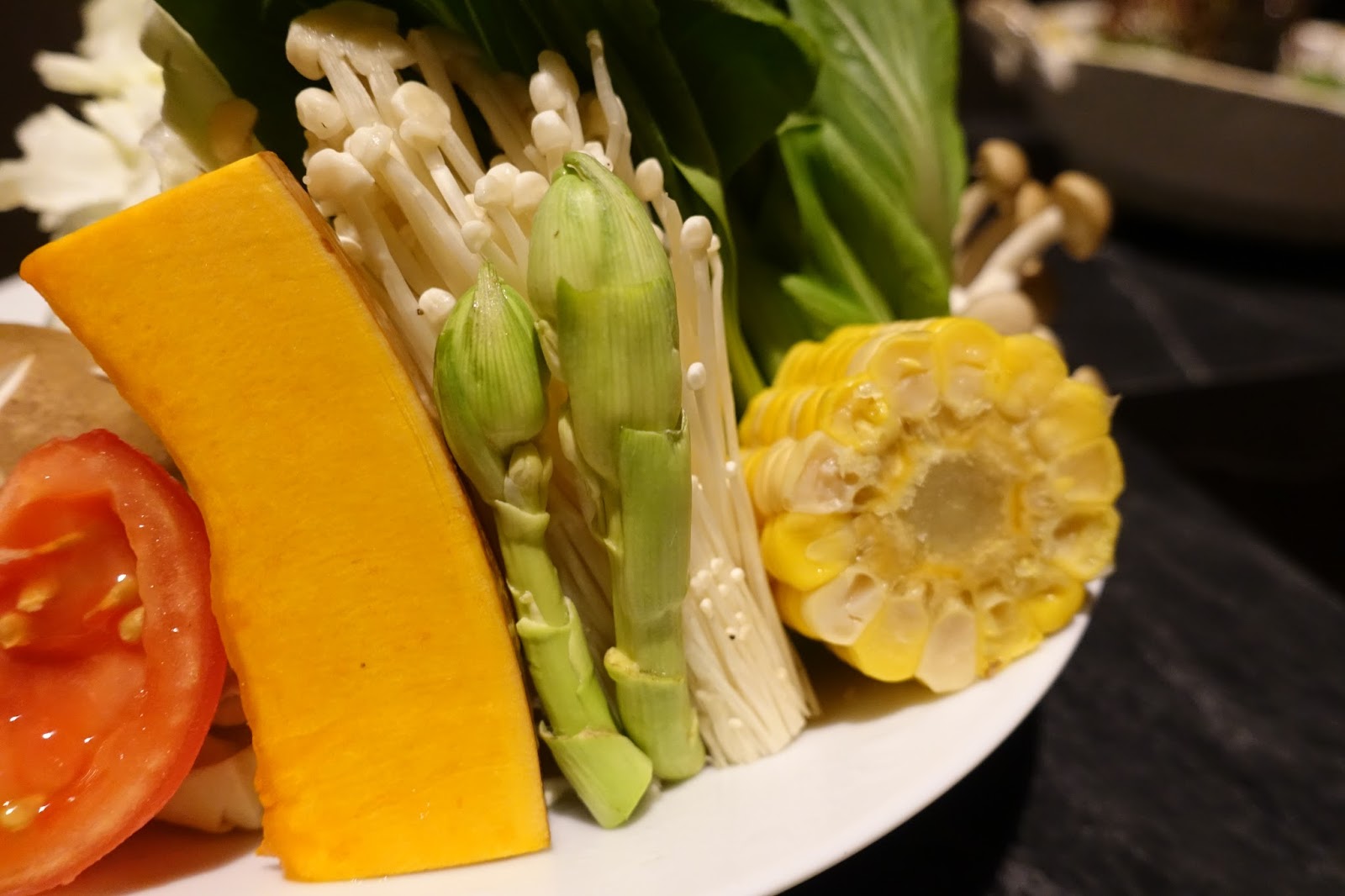 有機豬肉的口感也相當好,在熱湯裡精準泡熟,煮出來的肉片絕妙好滋味,是我吃過最嫩的火鍋豬肉片。