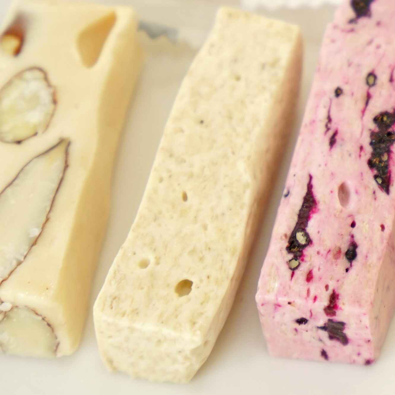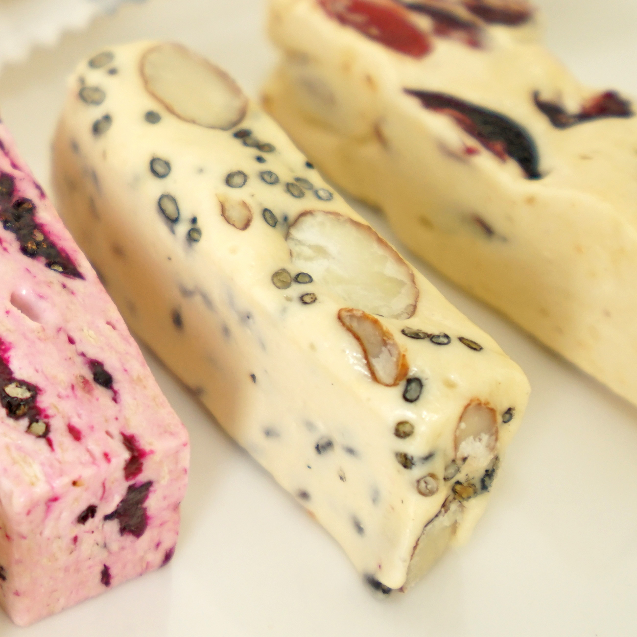 火龍果的口味最特別,用當季盛產的水果去做牛軋糖,帶著火龍果的清新,顏色也最鮮艷誘人。