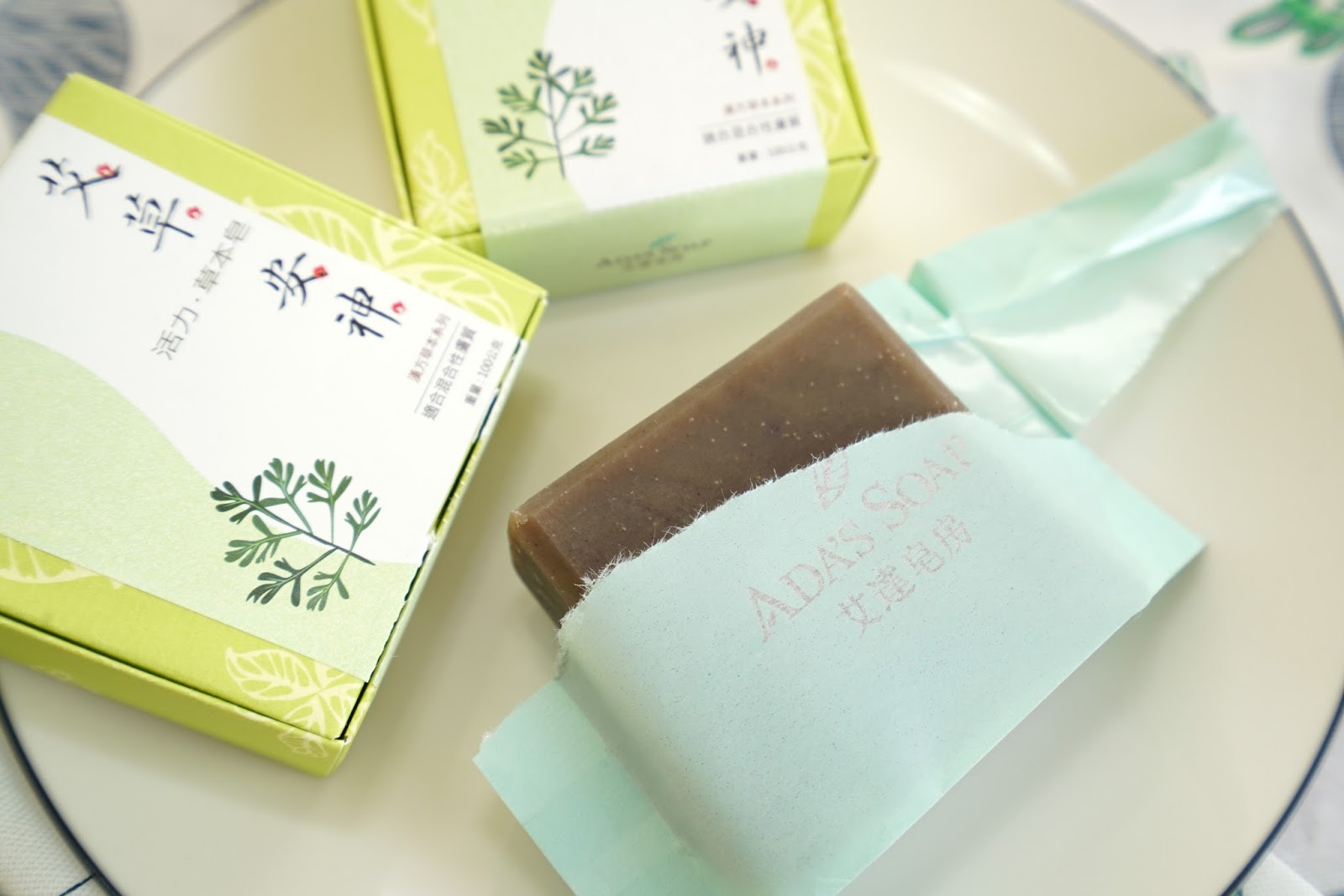 一打開艾草安神-活力草本皂,獨特艾草的香氣淡淡散發出來,一股自然的芬芳飄逸開來。