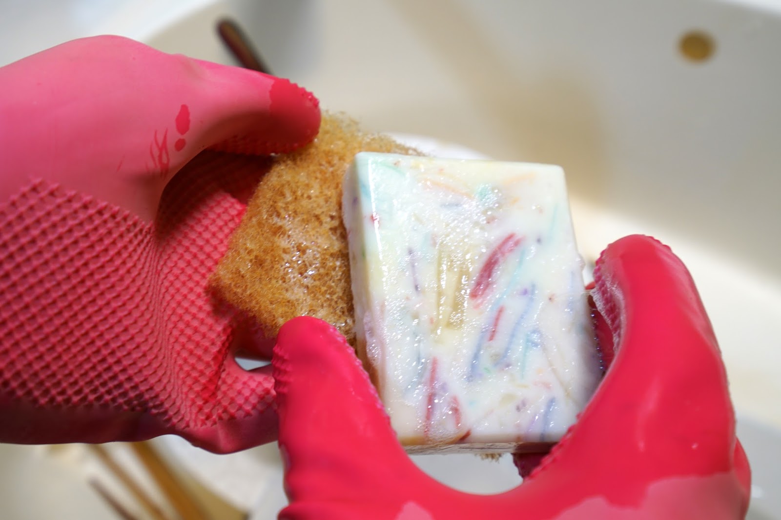 另外一款色彩繽紛得像糖果一樣的手工皂--艾達環保家常皂,竟然是一款是萬用家常皂,它讓我輕鬆解決居家清潔的問題,從廚房油膩的碗盤、佈滿髒汙的抽油煙機到衣物及浴室的清潔,艾達環保家常皂根本就是家裡油污和髒汙的剋星。