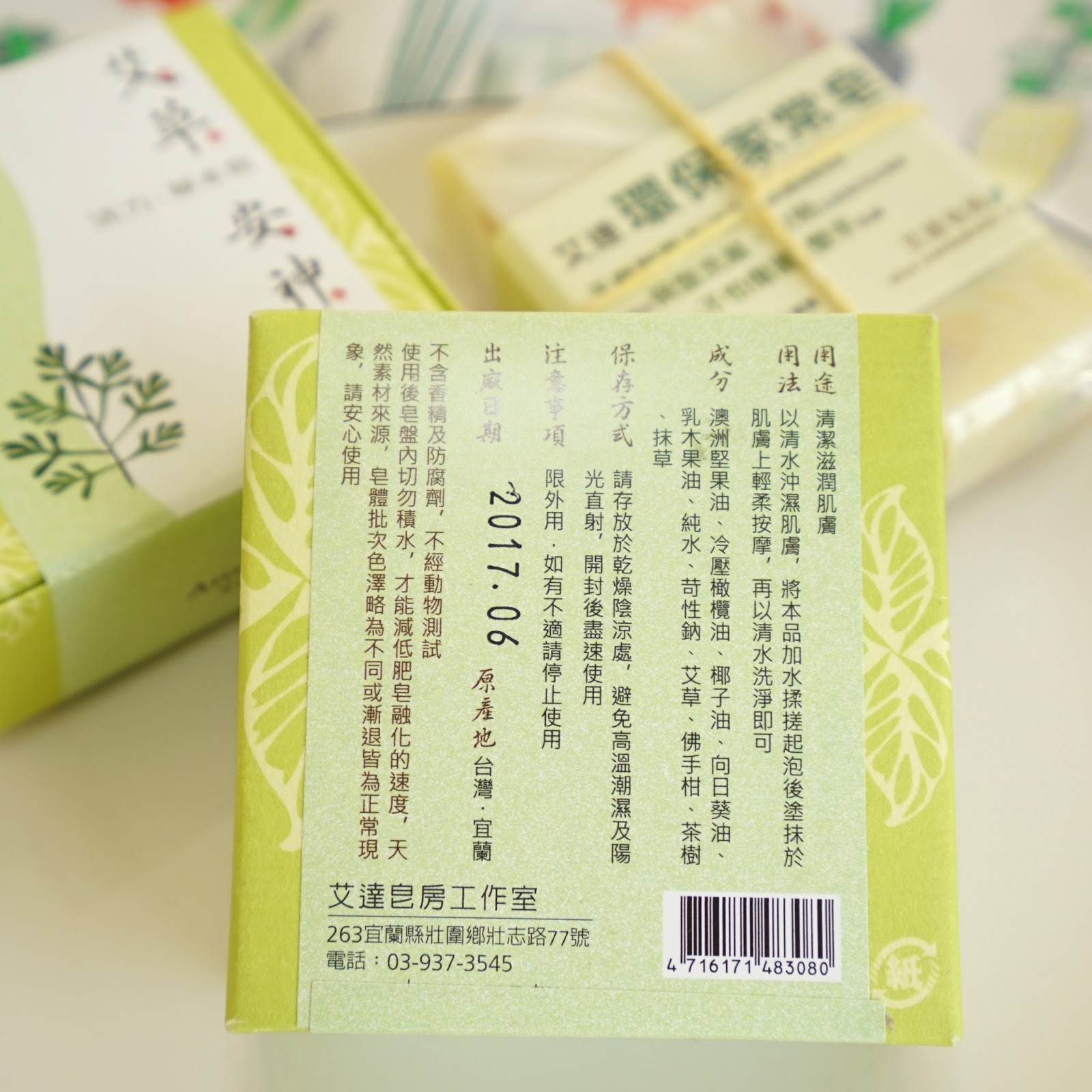 艾達手工皂是深耕宜蘭已經十年的製造專家,用宜蘭的好水和好環境去製作手工皂,品質讓人格外放心,也因此有「國民皂」之稱。艾達手工皂手工皂的包裝非常精緻,當禮盒送人也很得體,我一看到這個淡綠色的包裝盒就覺得好喜歡~