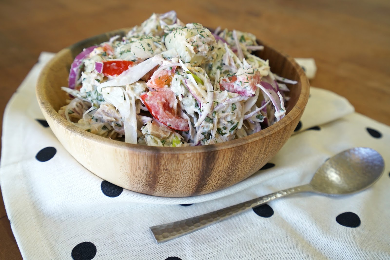 夏天最適合吃冰冰涼涼的沙拉,做一大碗沙拉,用木質的沙拉碗盛裝,看了就覺得心情好好,也很方便帶著去野餐,不用怕打破。