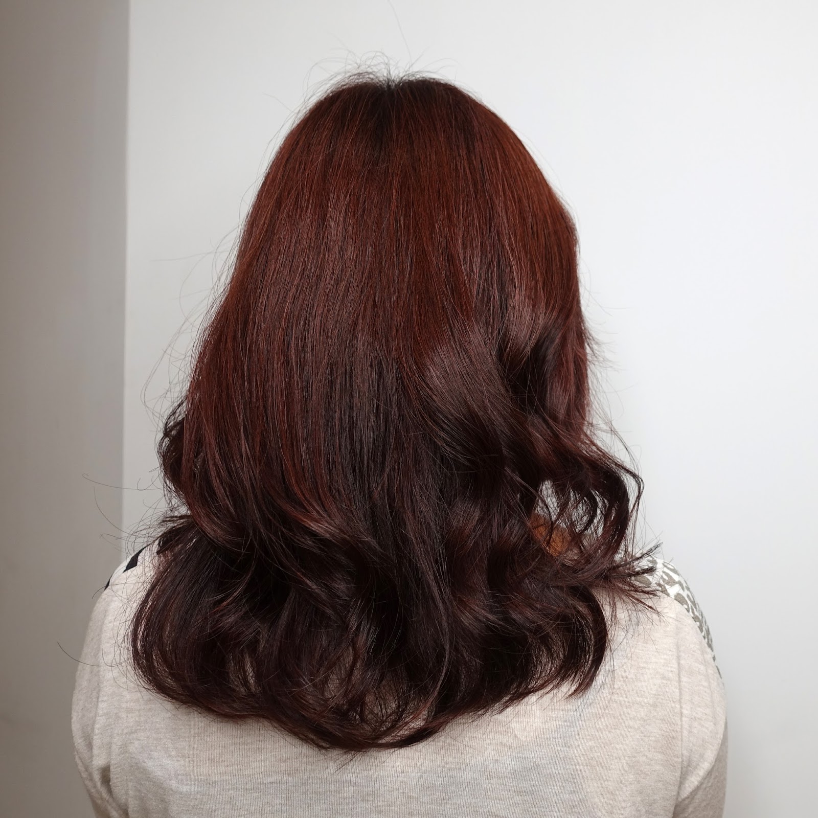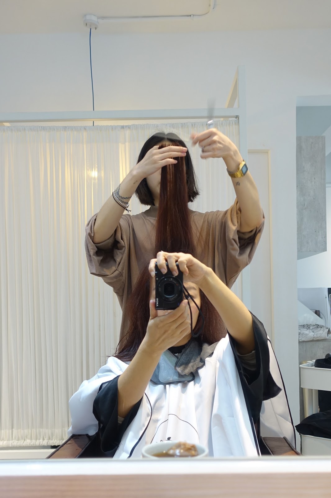 和設計師討論好髮型後就先去洗頭,助理在洗頭時非常注意水溫、力道、按壓的位置,洗頭的過程非常的舒適,因為我有染髮,還特別用護色洗髮精幫我洗,覺得十分貼心。