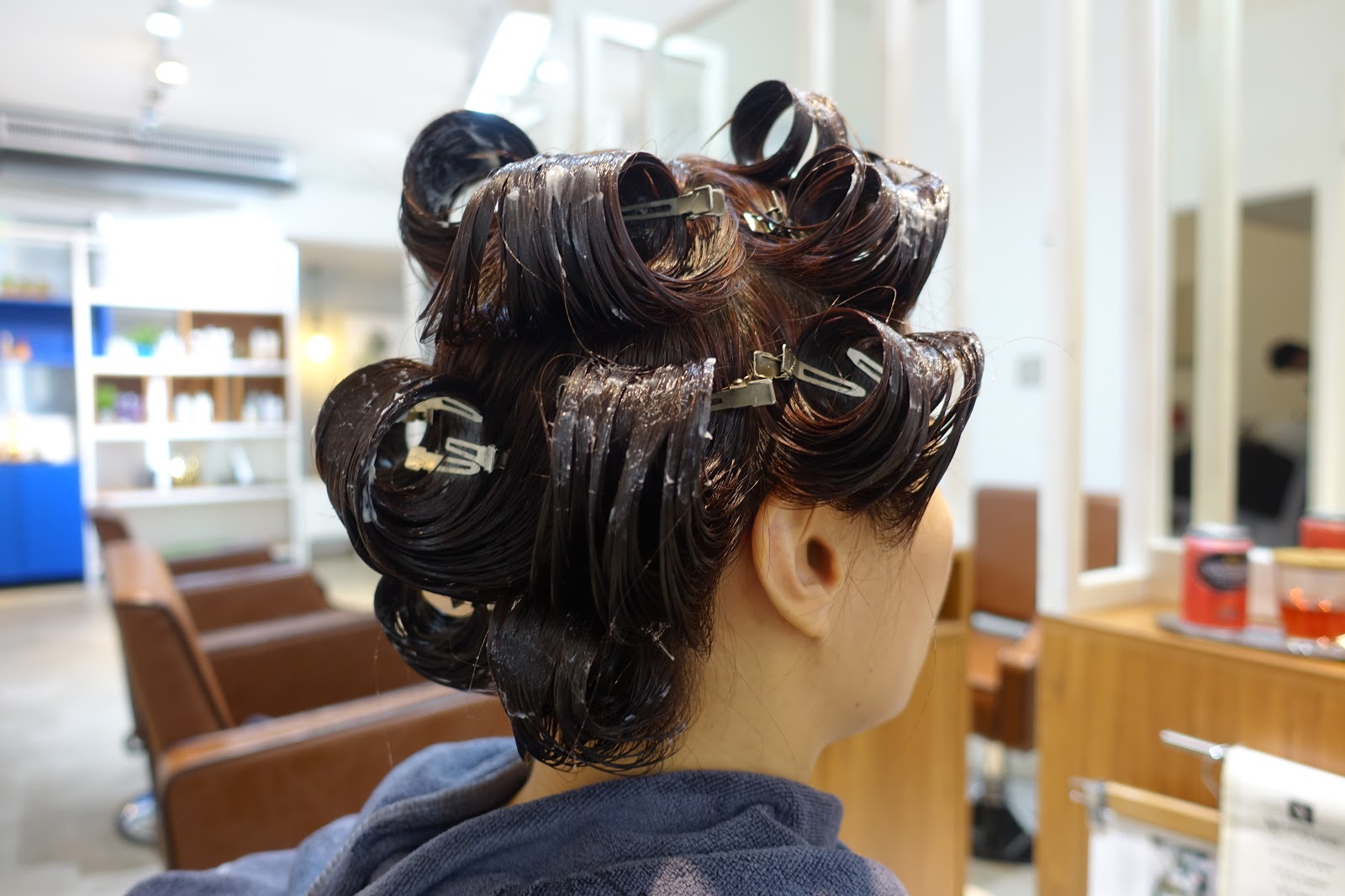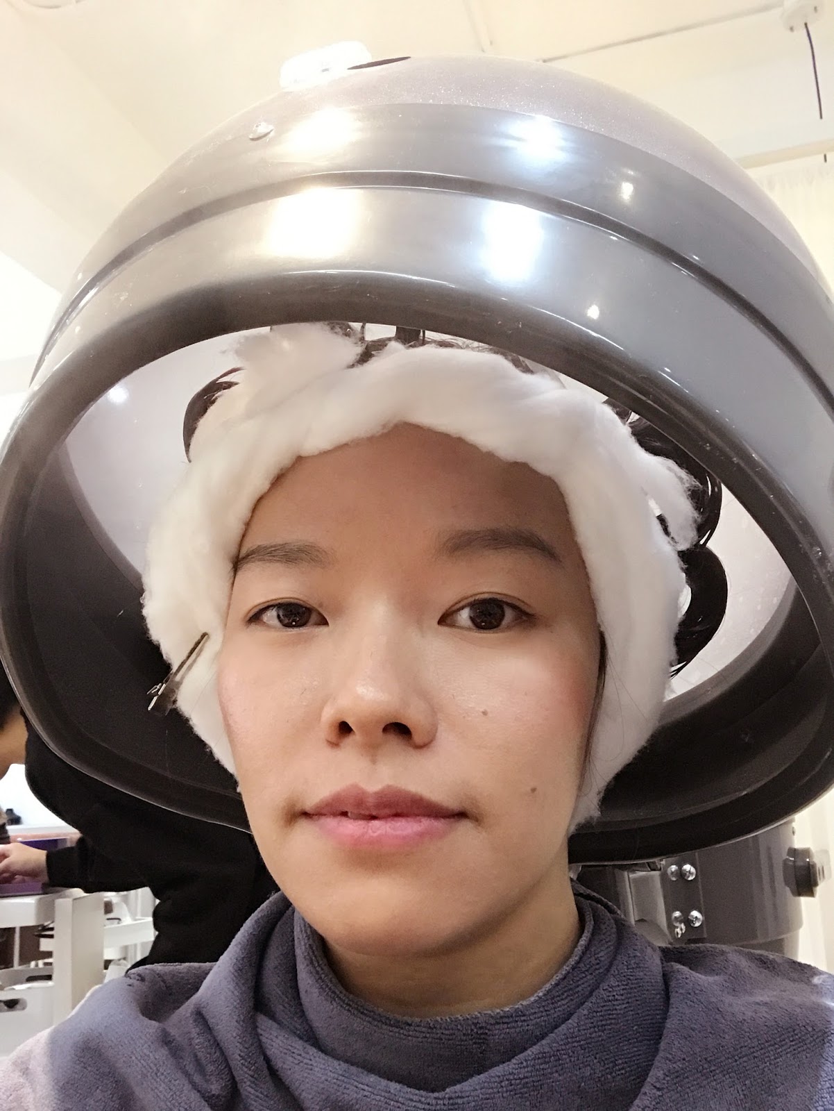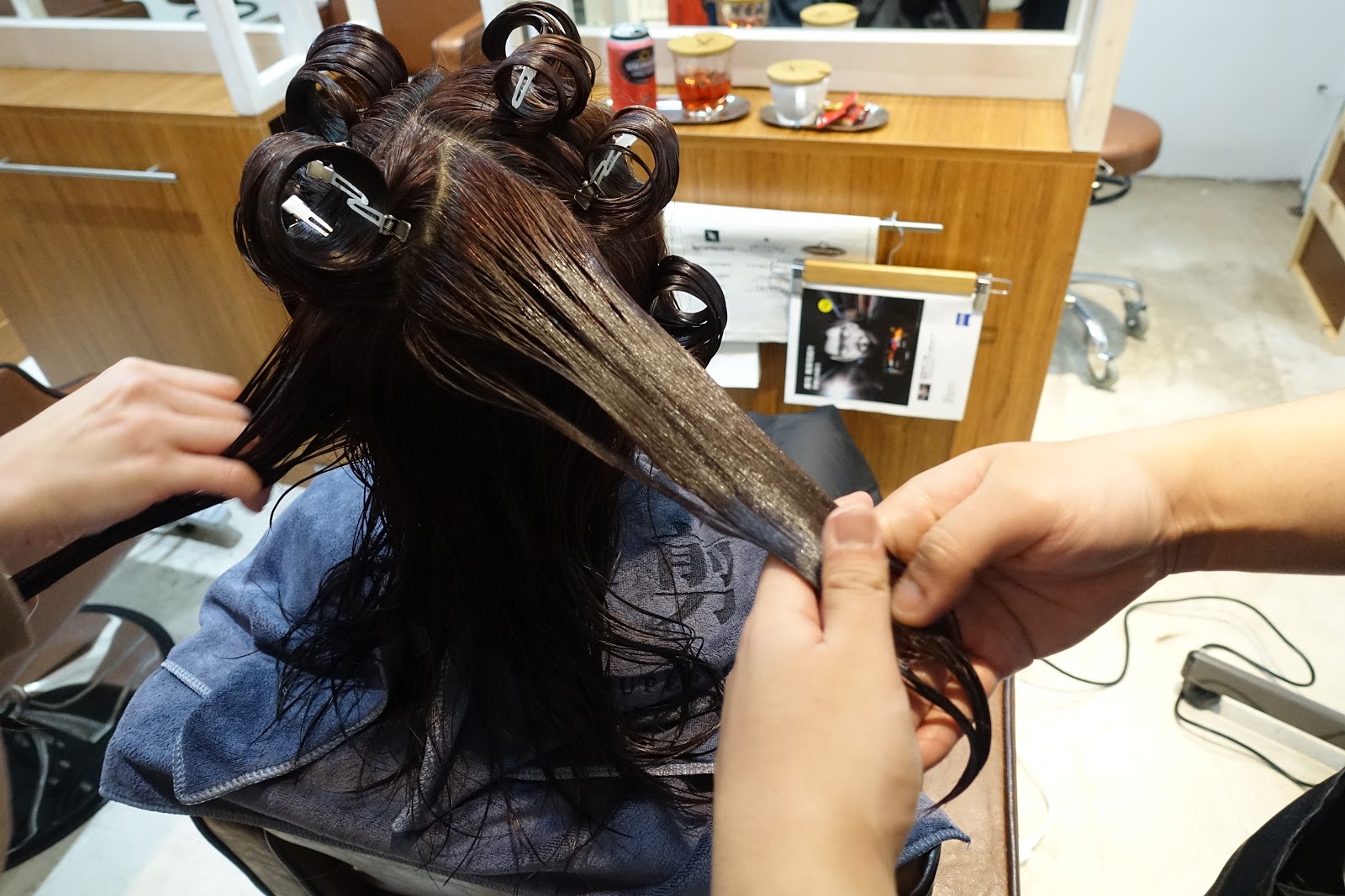 髮膜的滋潤度非常的好,但要均勻的推進頭髮裡相當費工,Penny很細心的將髮膜反覆的推進我的頭髮裡,然後再一搓搓的捲起來。