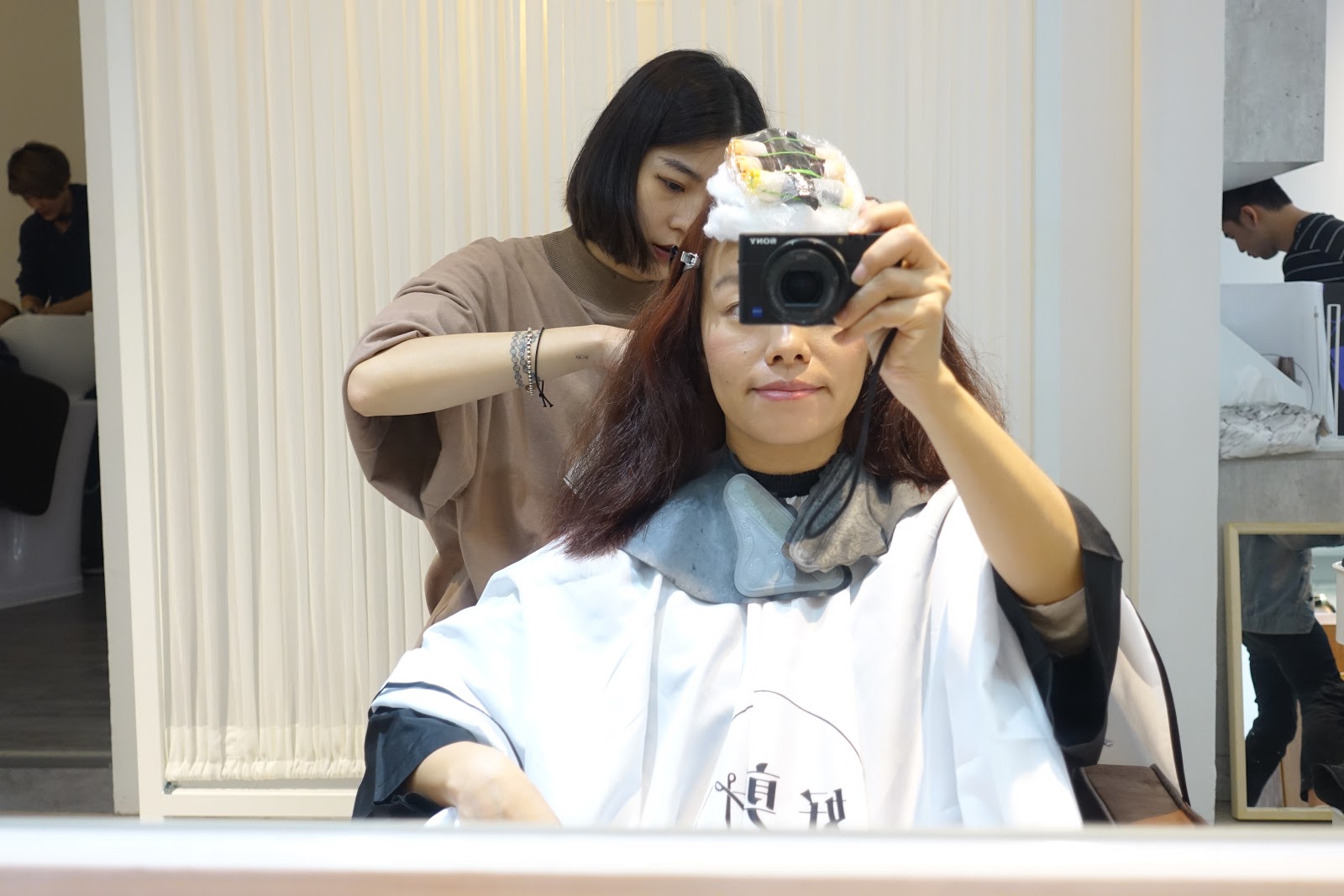 修好瀏海的長度後就先燙了三卷,然後繼續修剪後面的頭髮,Penny花了很多的功夫在修剪我厚厚的長髮。