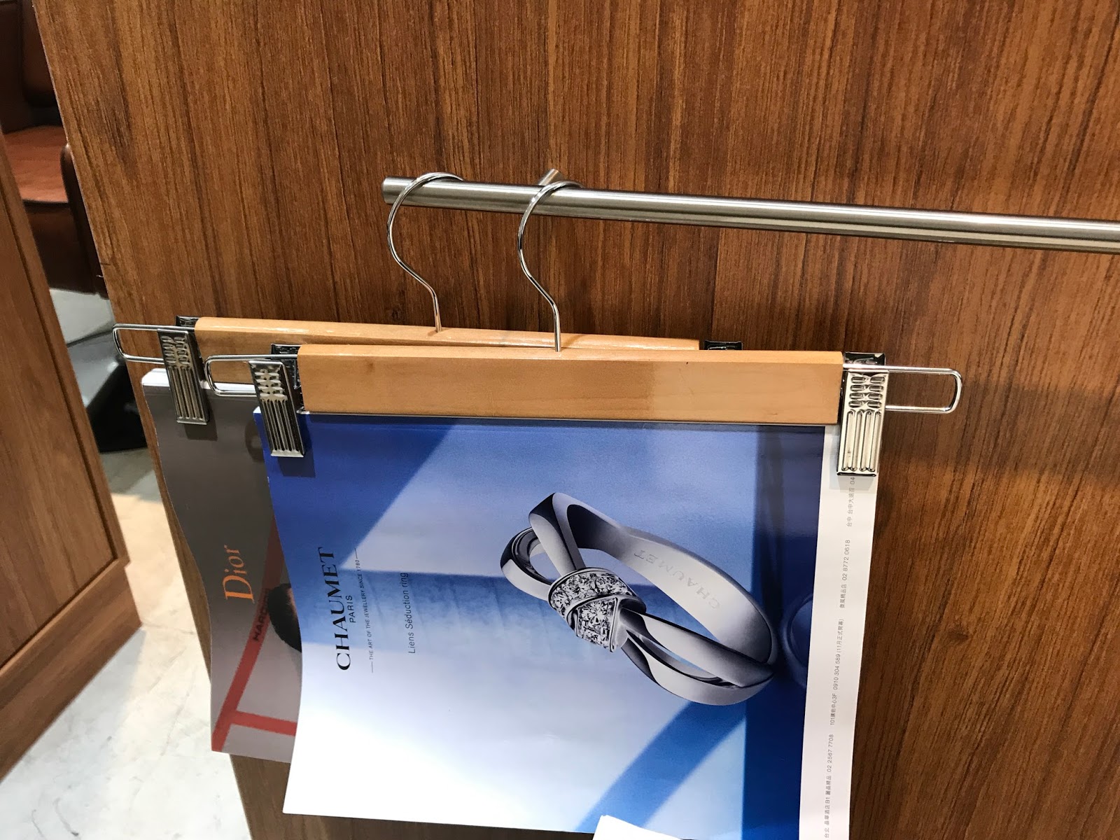 雜誌就像服飾一樣掛在桌前的橫桿上,拿取超方便。