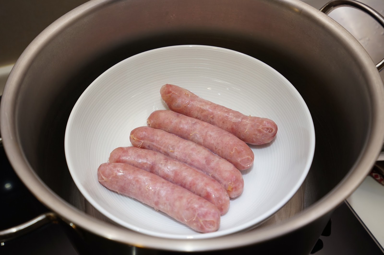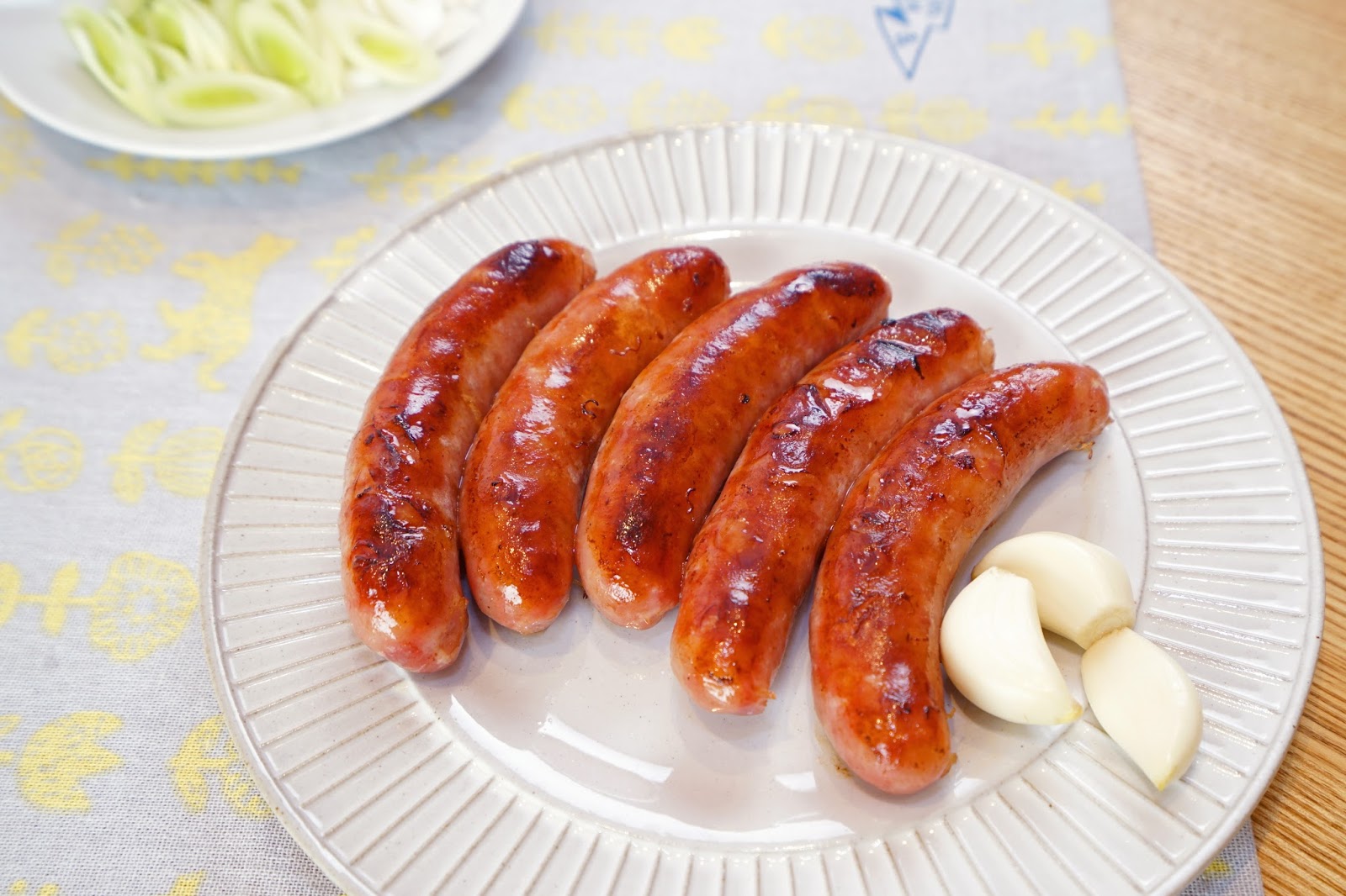 將飽滿的桐德黑豚肉香腸先蒸後煎,是最方便快速的做法!