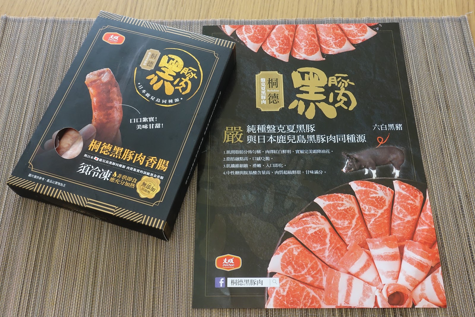「桐德黑豚肉」是一款大成在台灣繁殖育種的頂級黑豬,從美國進口純種盤克夏黑豚在台養殖,這款黑豬可以說是與世界前三大名豬齊名,品種與日本鹿兒島黑豚肉系出同門,且與西班牙伊比利黑豬肉質一樣,油花均勻分布,和一般豬肉相比,更顯得柔軟多汁、風味甜美,牠的肉質擁有霜降大理石紋油花,由於在台灣培育所以肉質新鮮而多汁,用來做成桐德黑豚肉香腸口感自然不凡。