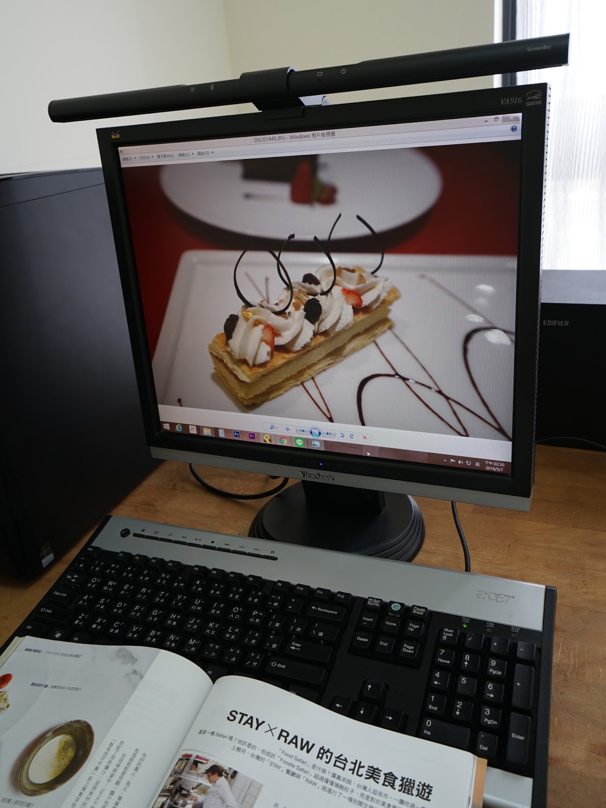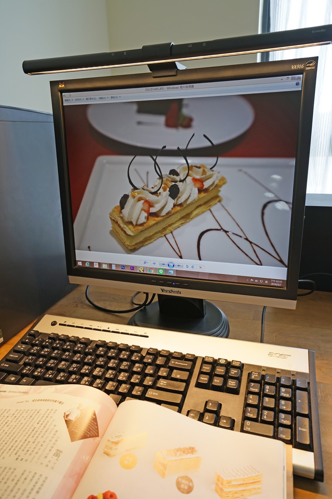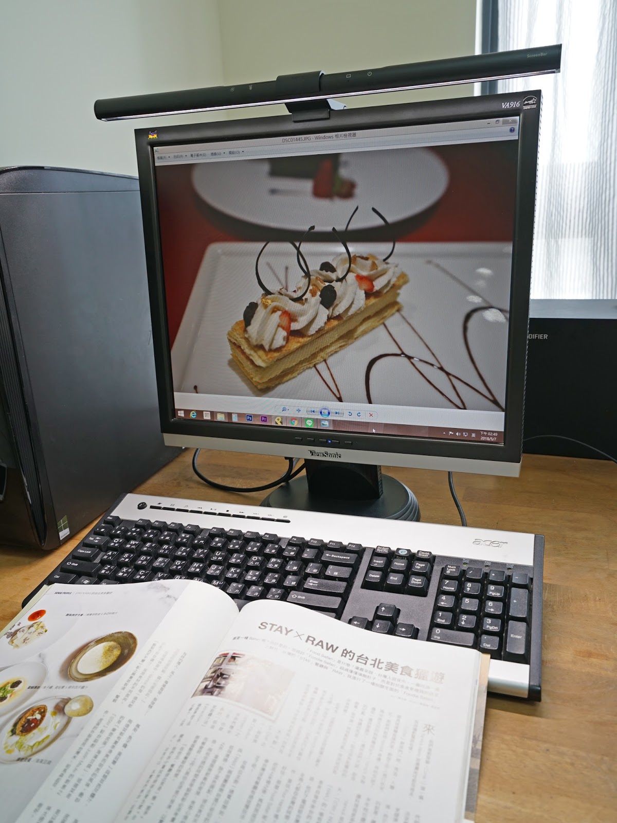 螢幕前的書本也照得清清楚楚,當工作到一個段落,看個雜誌放鬆一下!