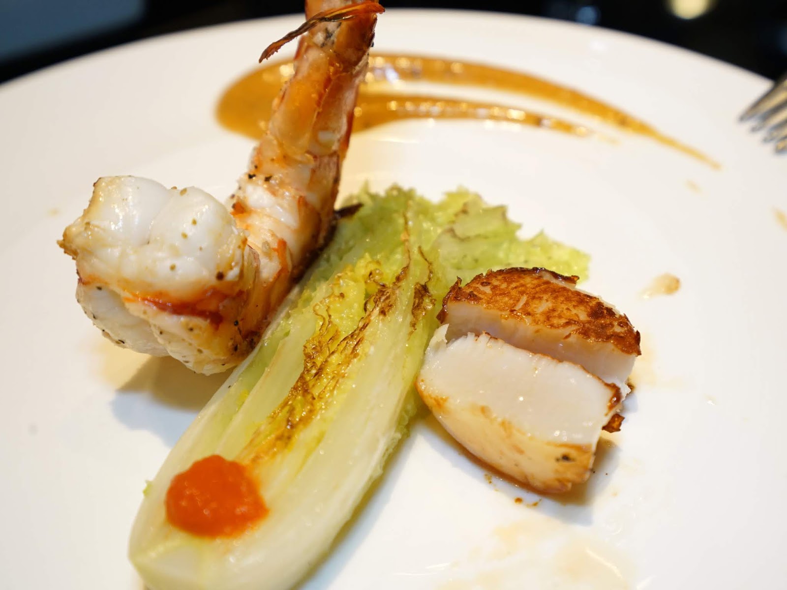 蝦頭部分特別單獨煎熟,佐著松露做成的醬料一起享用,不僅味道鮮美、帶著蝦卵的口感層次非常獨特。