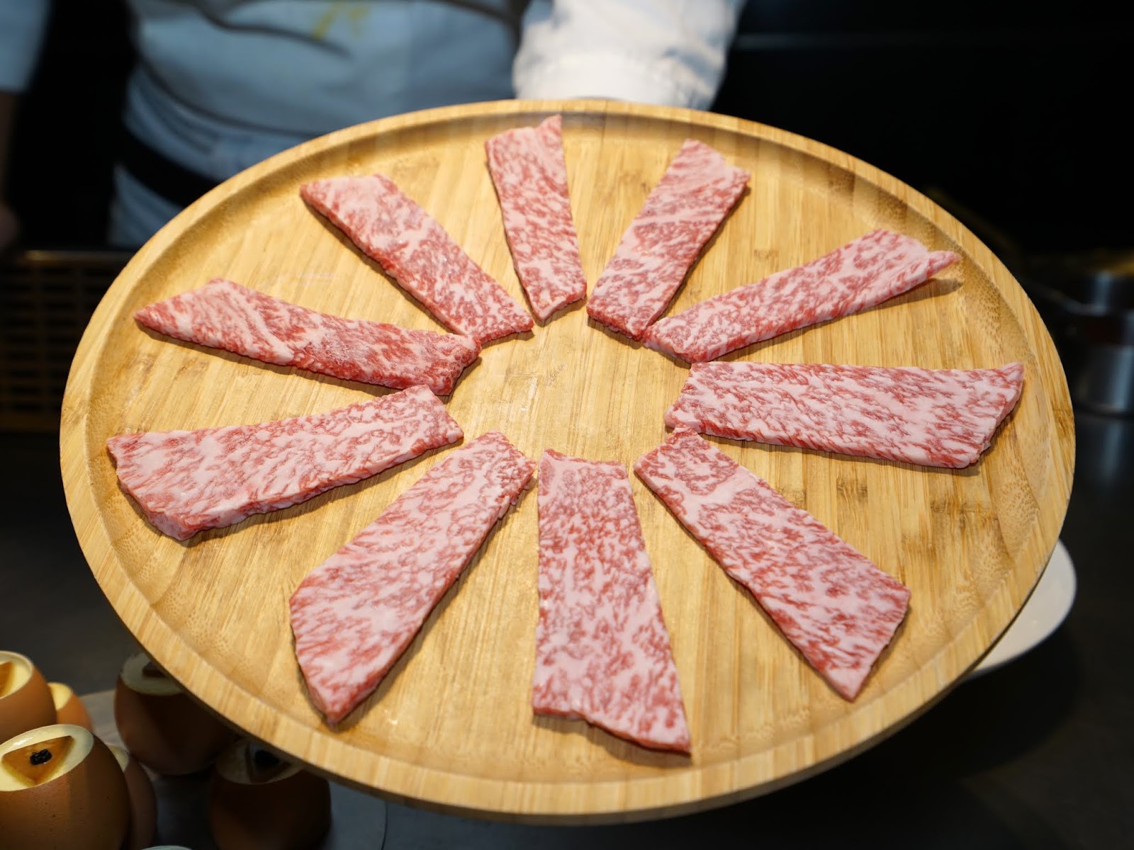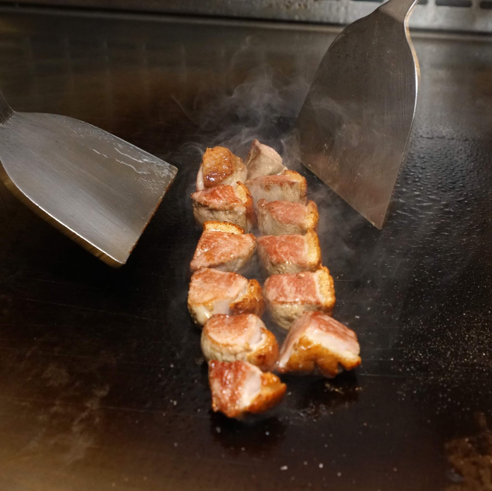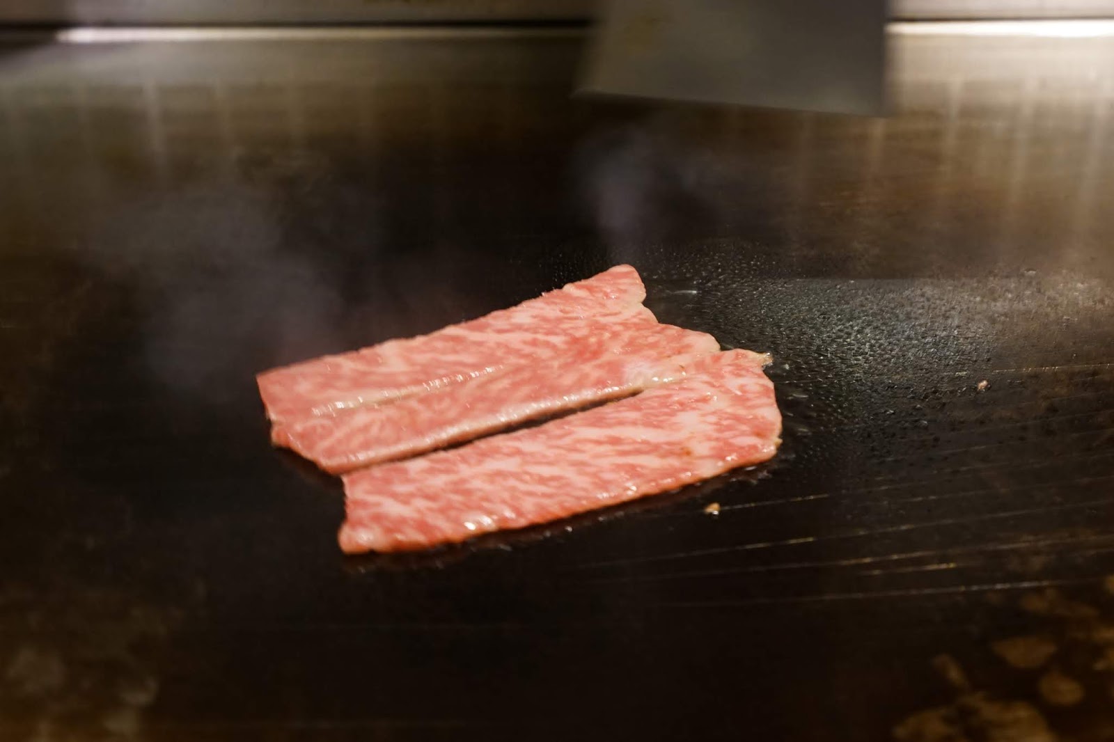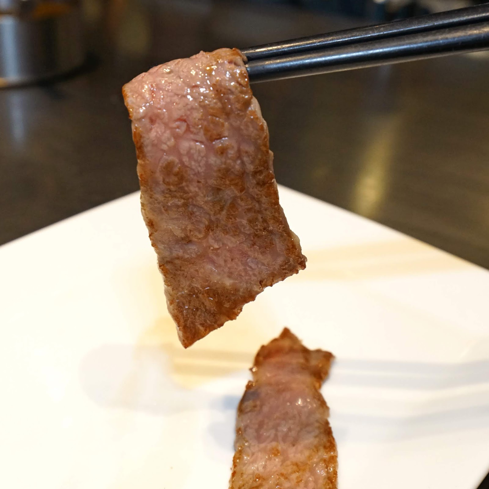 煎的時間要掌控得非常剛好,讓和牛剛好熟又不會太老,每次只煎2片,等我們品嘗後才繼續再煎兩片,這樣每一片入口的溫度剛好,能吃到和牛加熱後油脂溶化的口感,讓肉的自然甜味在嘴裡迸發的滋味。