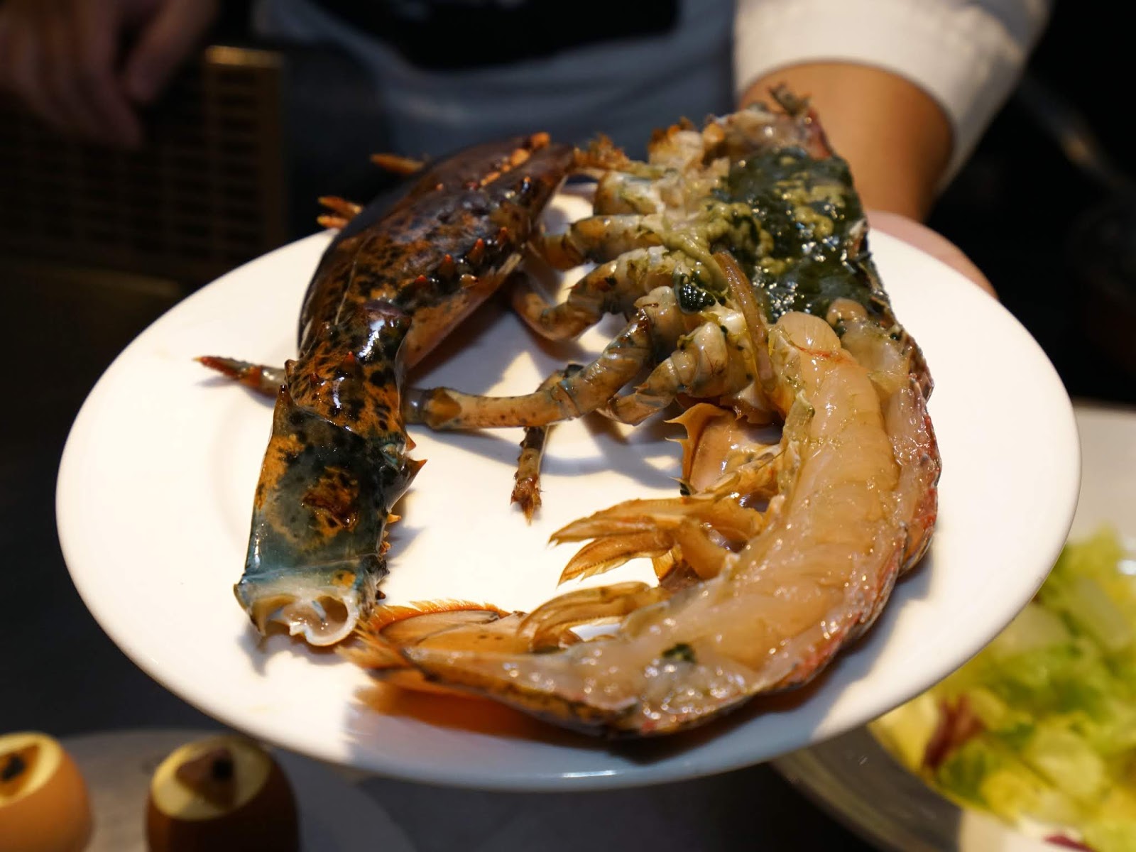 煎好後更是令人看了垂涎三尺,蝦肉已經事先處理好與蝦殼分離,所以只要用叉子一撥就可以把蝦肉整個取出來吃,真的非常貼心,活龍蝦的肉質軟嫩多汁,和我從前吃過的冷凍龍蝦差異甚大,高檔的活龍蝦果然是極品。