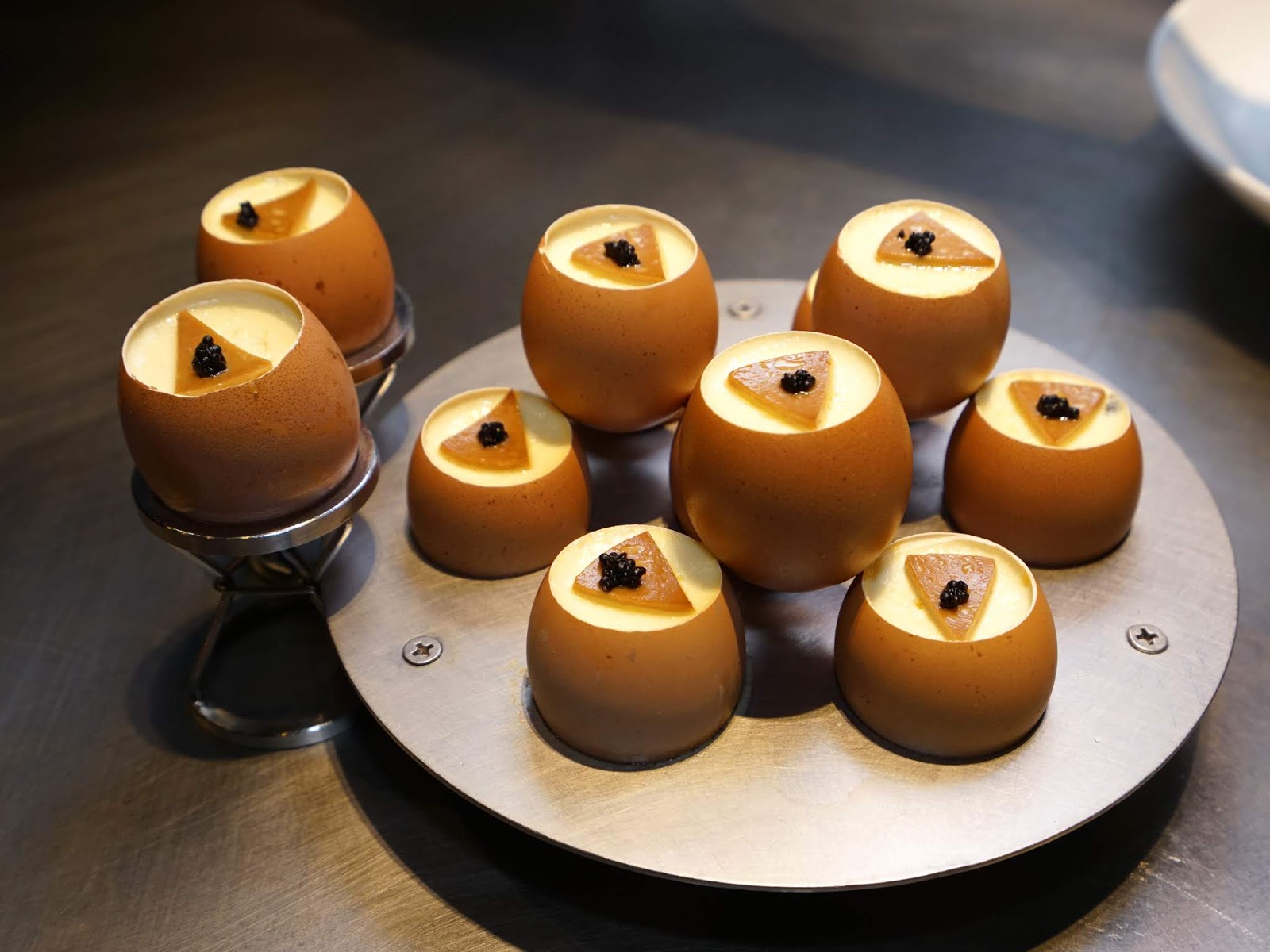 鐵板上展示著墨賞有名的松露魚子醬蒸蛋,看起來十分可口誘人!