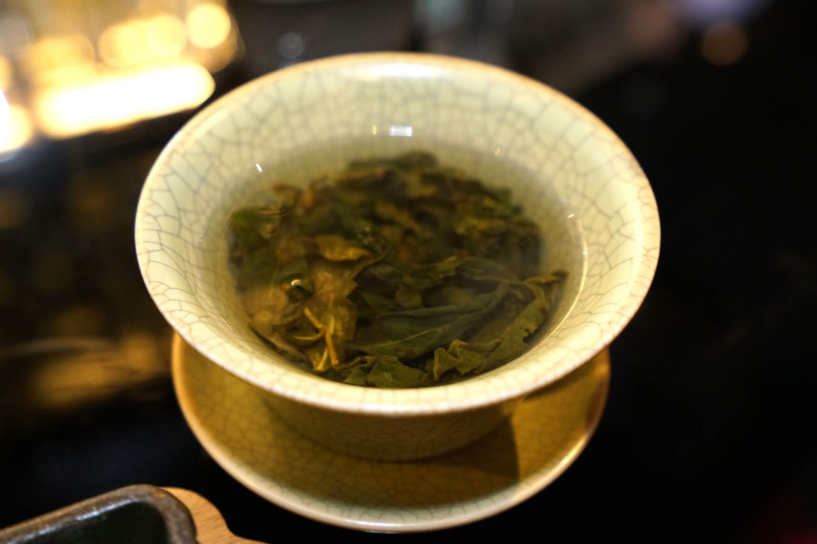 最後慢慢品嘗這杯阿里山烏龍茶,回味這個美食之夜,看著烏龍茶葉慢慢舒展開來好療癒,喝起來滋味溫潤,茶香四溢。