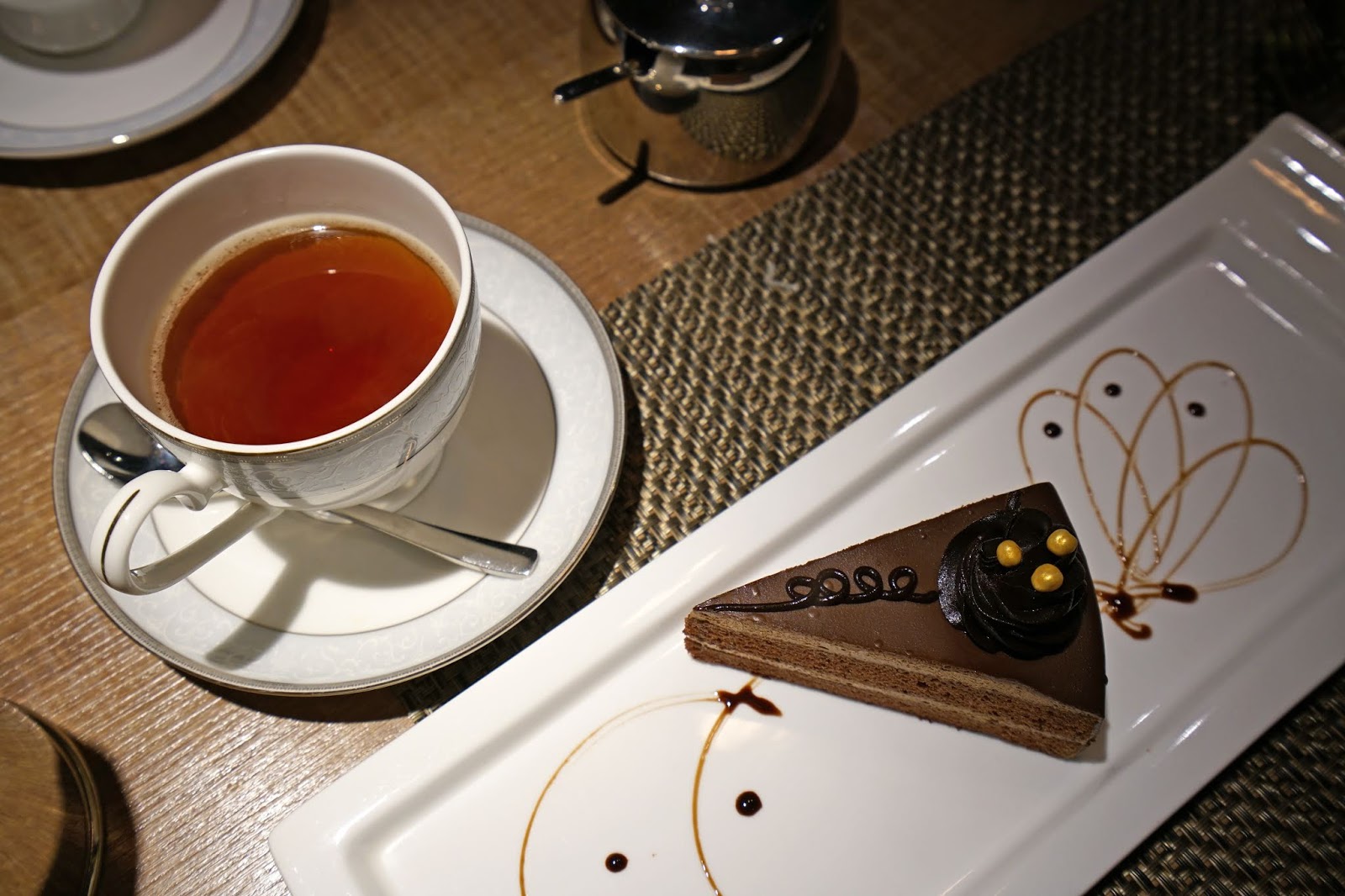 紅茶是無糖的,可自己酌量添加糖,搭配著松露巧克力蛋糕,口感香醇。