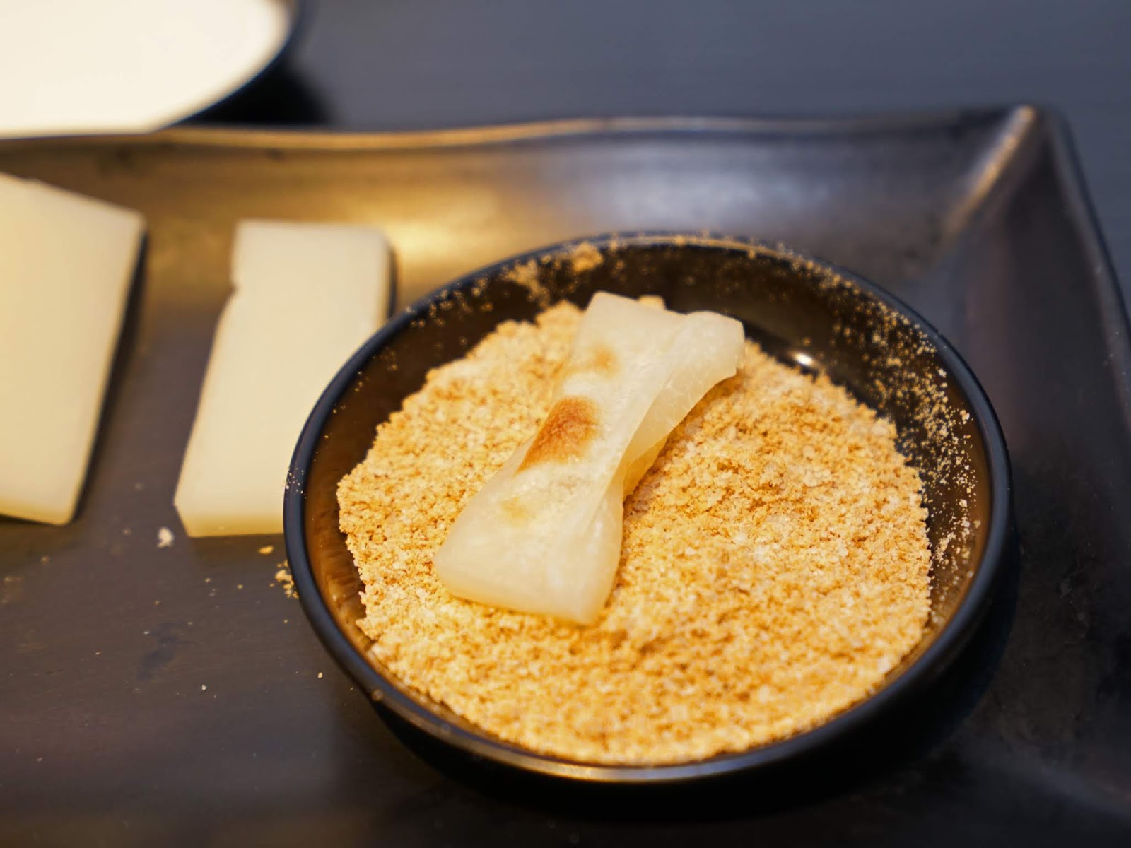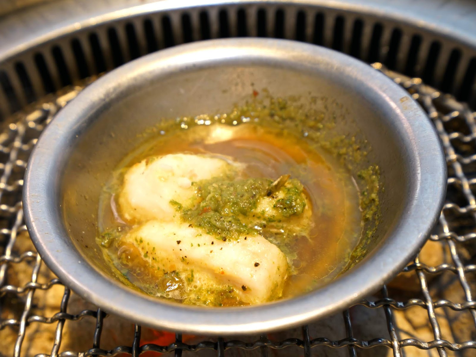 吃完烤肉、海鮮後,烤麻糬又是另一個吃燒肉的重頭戲,服務人員幫我們換了新烤網,就可以開始來烤麻糬了!