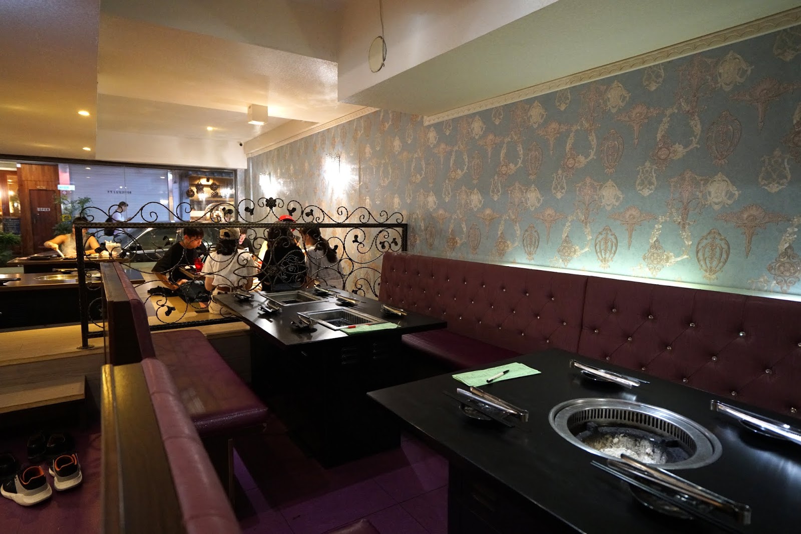 店內風格有著法式時尚感,座位的桌距很大,因此聽不太到鄰桌的聲音,燒烤的煙味從火爐側邊就吸掉了,雖然是吃到飽的餐廳,卻沒有嘈雜感,在這裡吃燒肉非常享受。