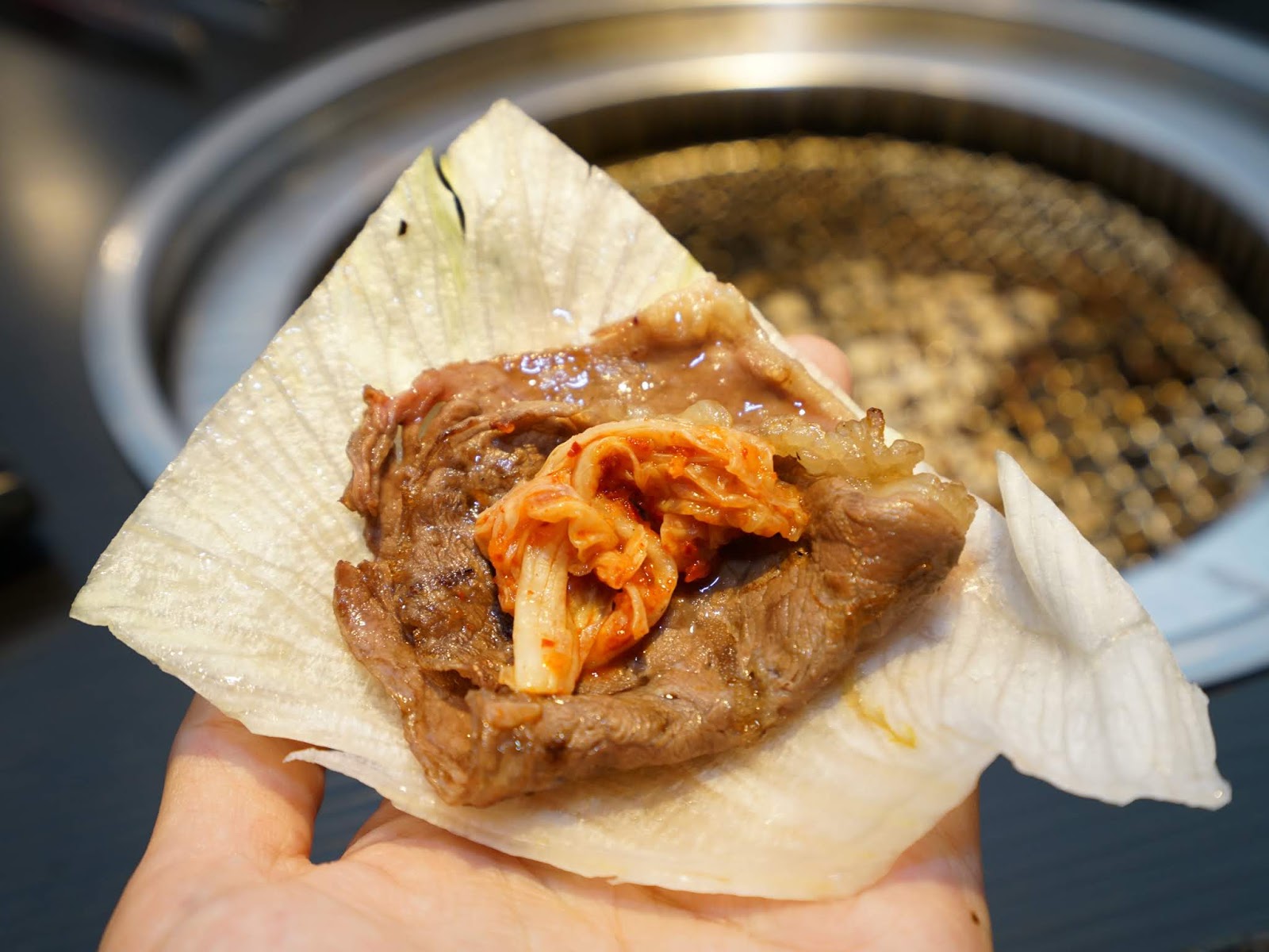 新鮮的豬肉肉質彈脆度非常好,而且肉汁飽滿,用生菜葉去捲,配上蒜頭、洋蔥或泡菜都非常美味,新鮮生菜增加口感層次,讓肉吃起來不油不膩,我一次可以吃好幾捲!